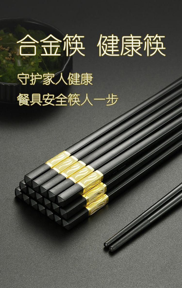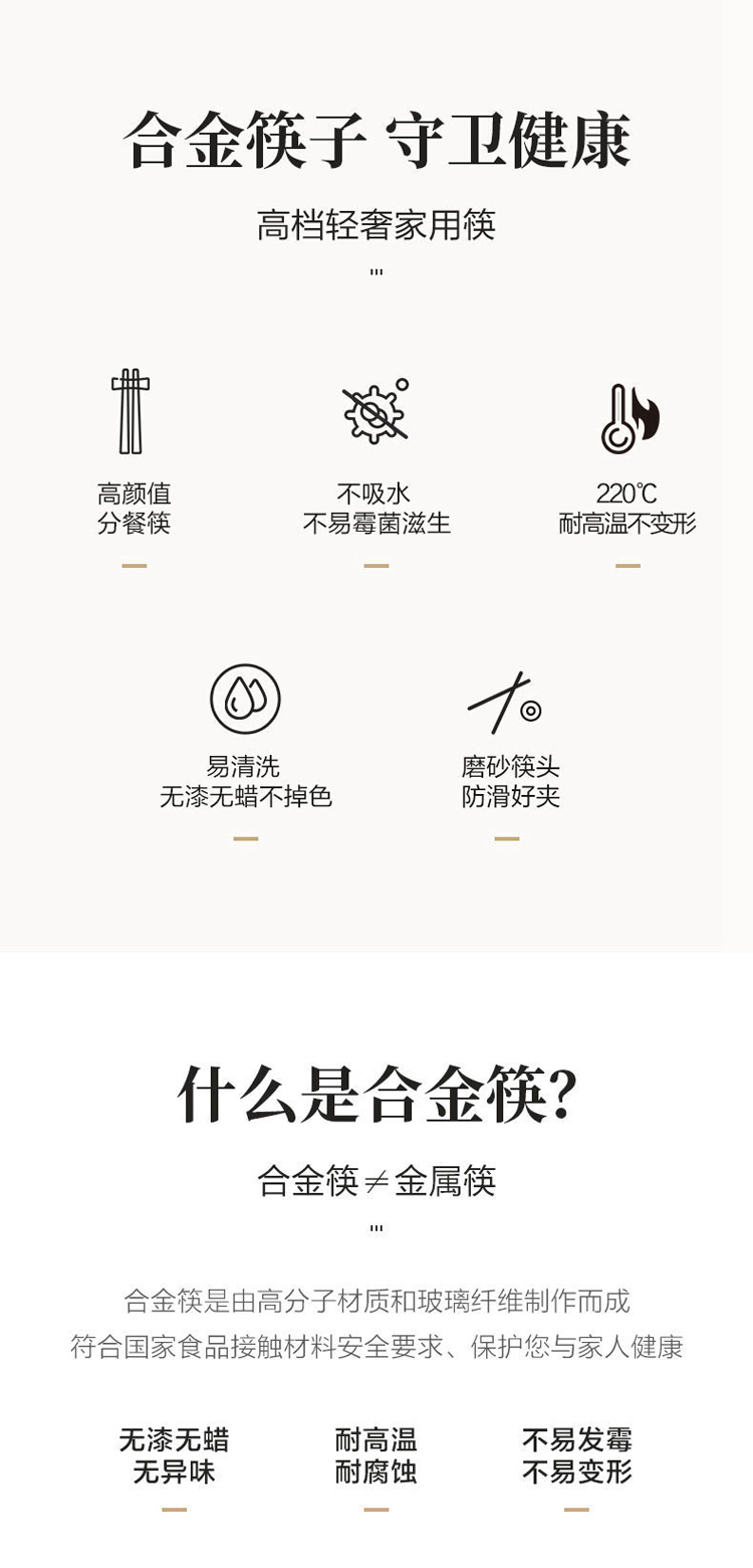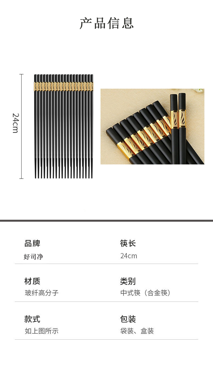【自营】好司净Houseking 合金筷子 家用耐高温防霉防滑10双装