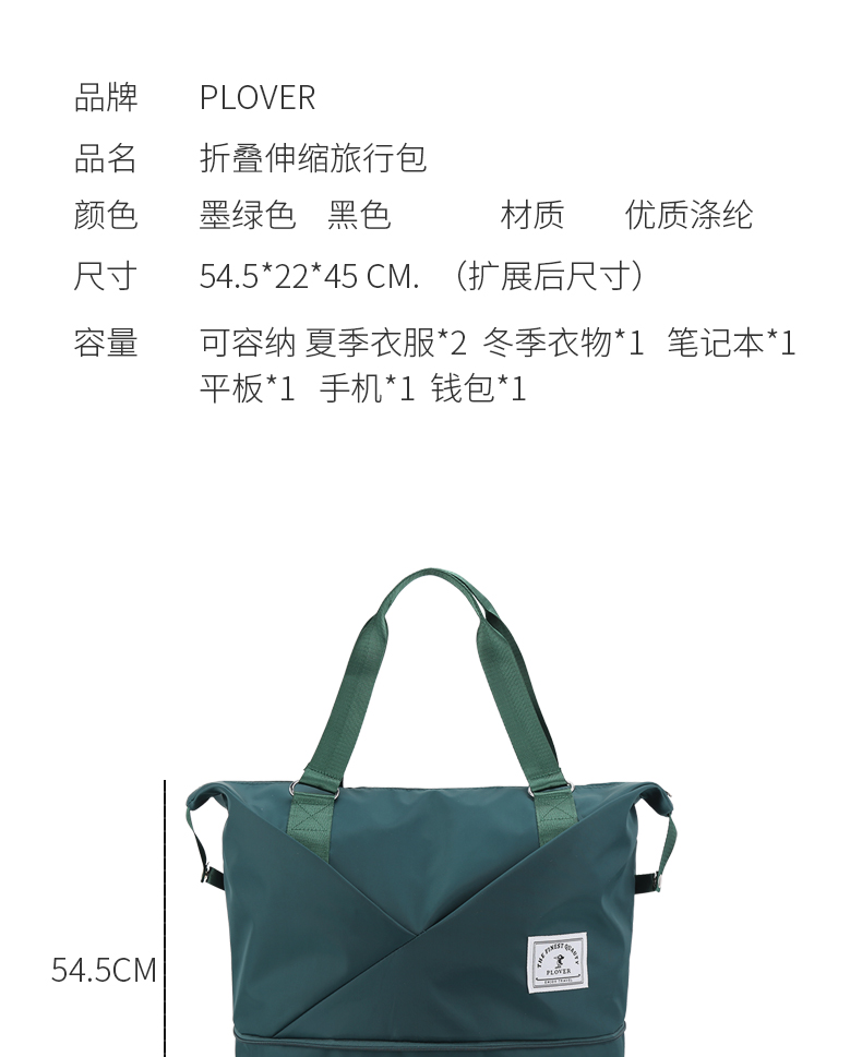 【自营】PLOVER香港啄木鸟折叠伸缩旅行包GDLXB4142-A 黑色