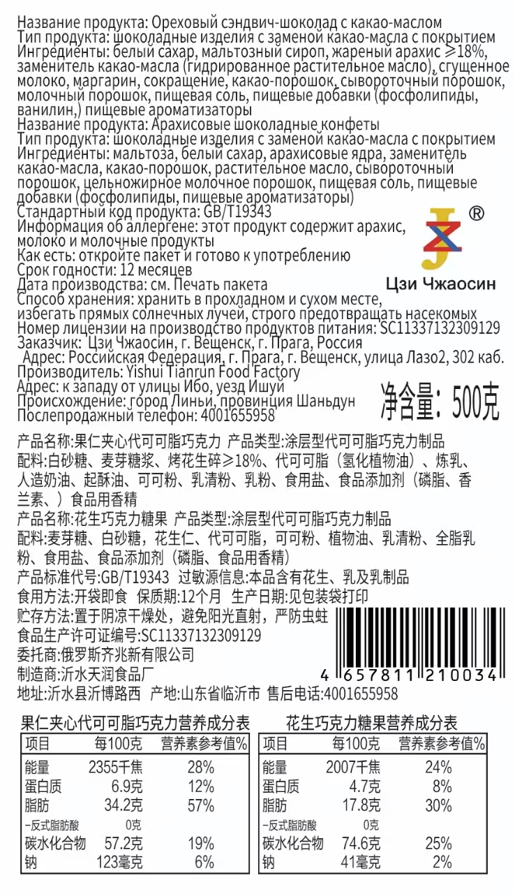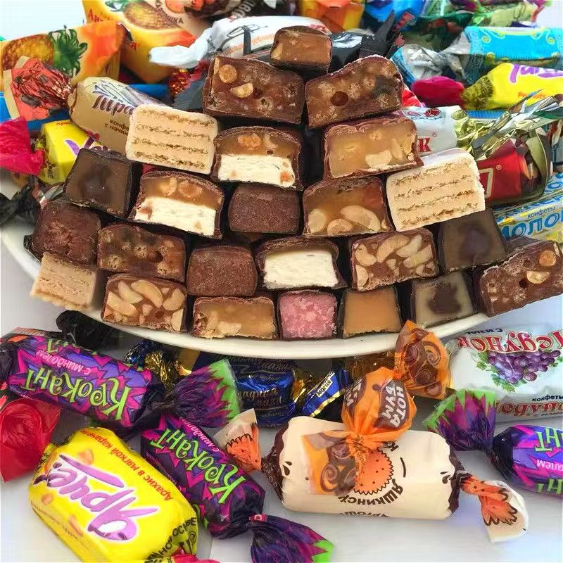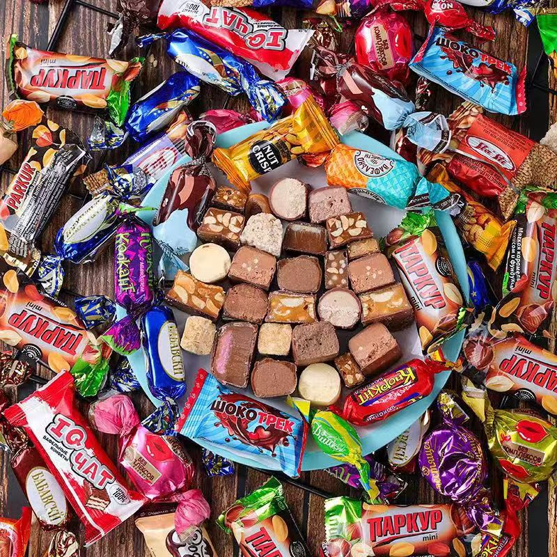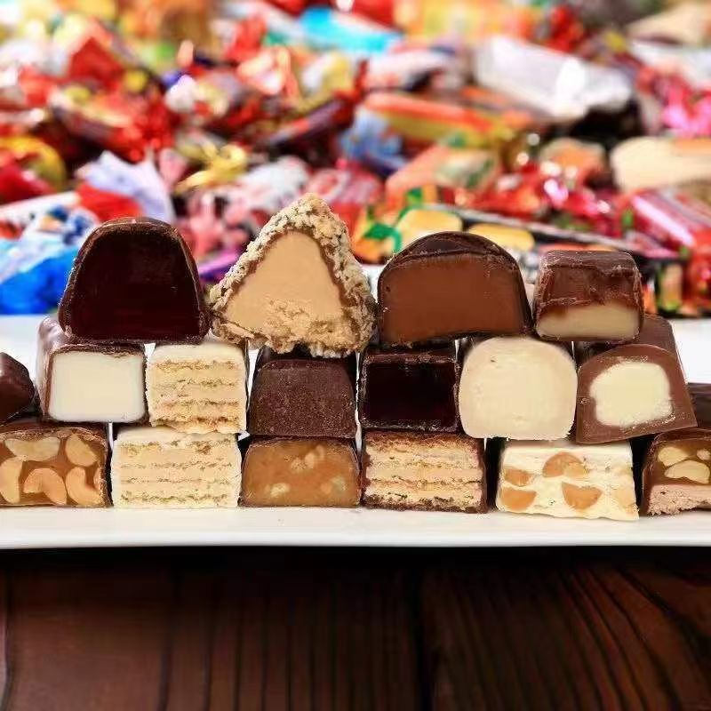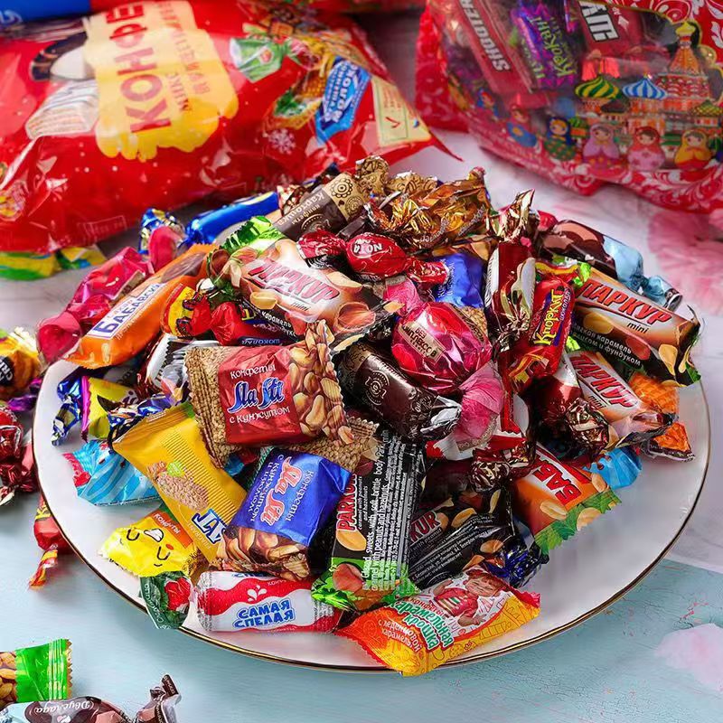 1500g/3大袋俄罗斯风味混合糖巧克力多种口味夹心软牛扎糖果