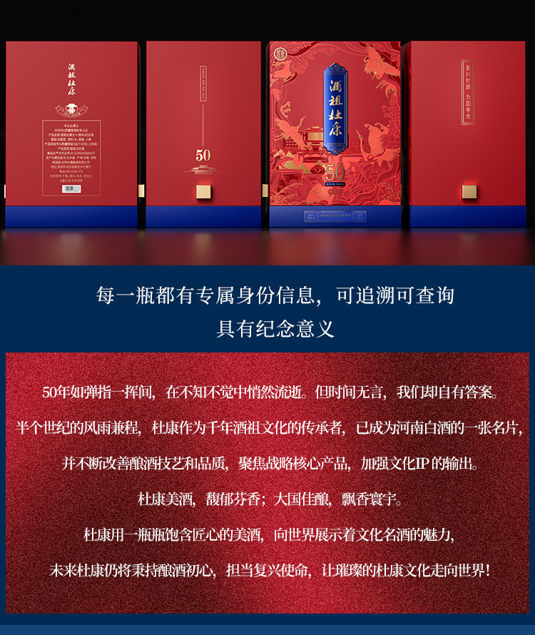 酒祖杜康复兴50周年纪念酒60度浓香型白酒750ML一瓶礼盒装
