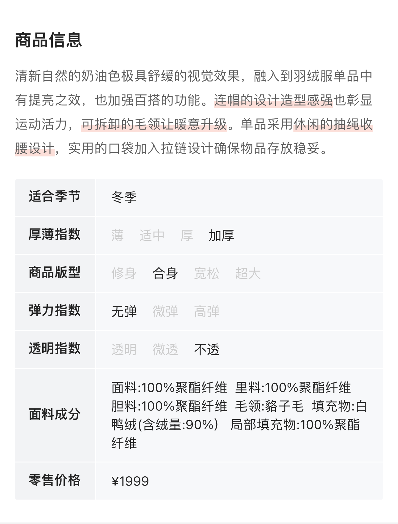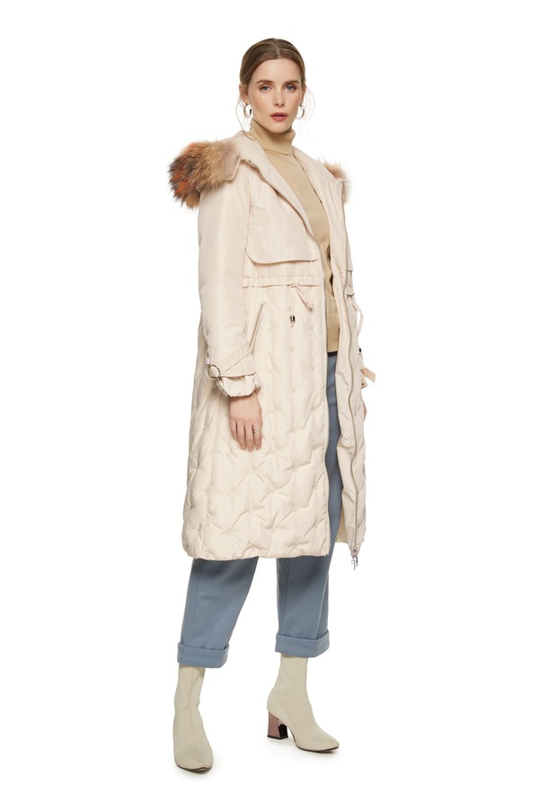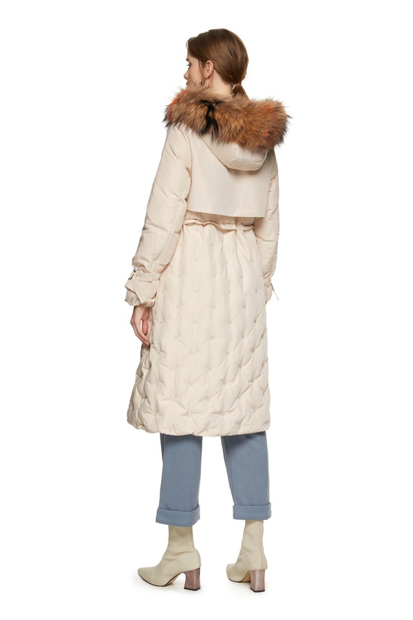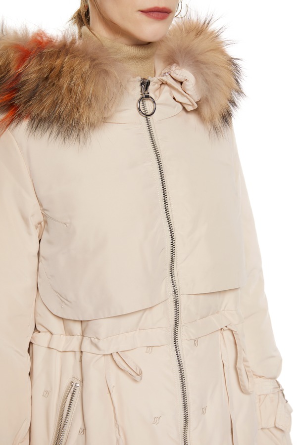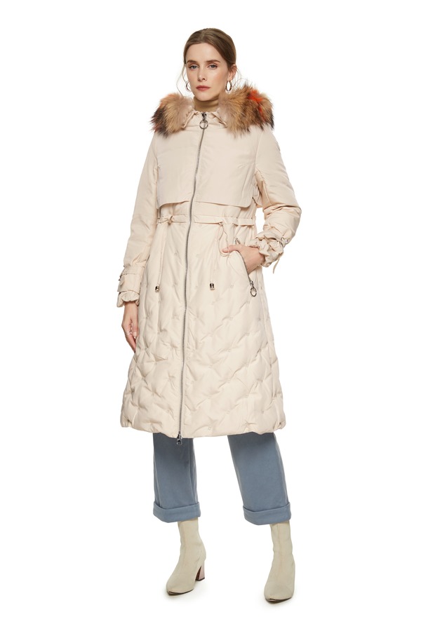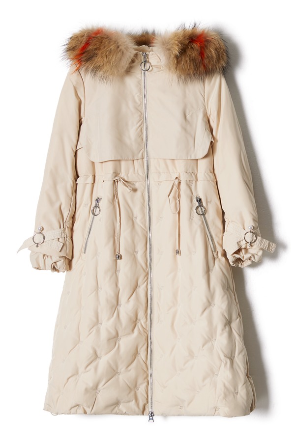 灵音 奶油色抽绳毛领羽绒 8433