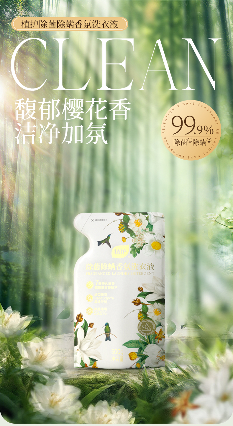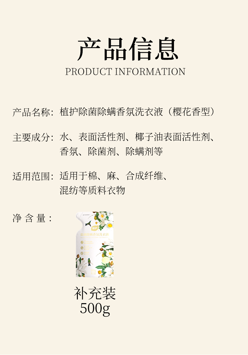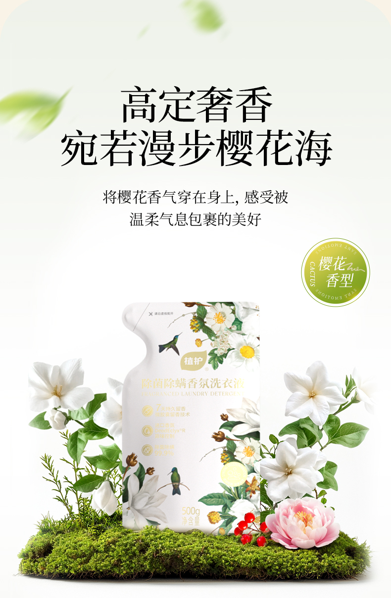 植护 除菌除螨香氛洗衣液(樱花香型) 500g×1袋