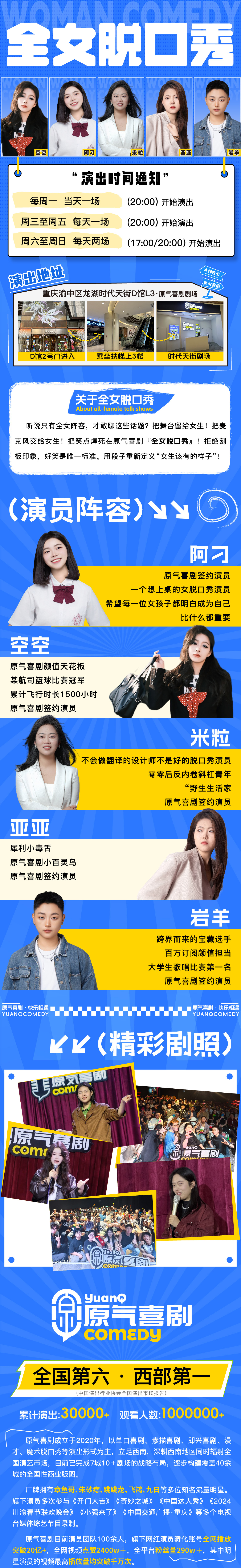 - 提供脱口秀、新喜剧、即兴喜剧、相声、沉浸式戏剧、儿童剧演出和新趣活动体验。