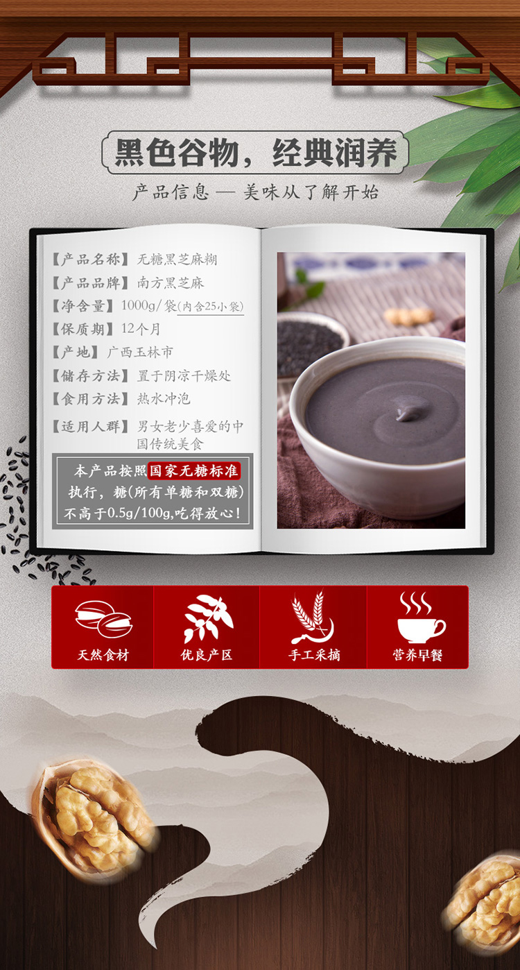 无糖黑芝麻糊1000g+无添加蔗糖玉米糊600g+无蔗糖黑芝麻核桃黑豆粉600g+无糖阿胶黑芝麻丸126g2袋 共5件
