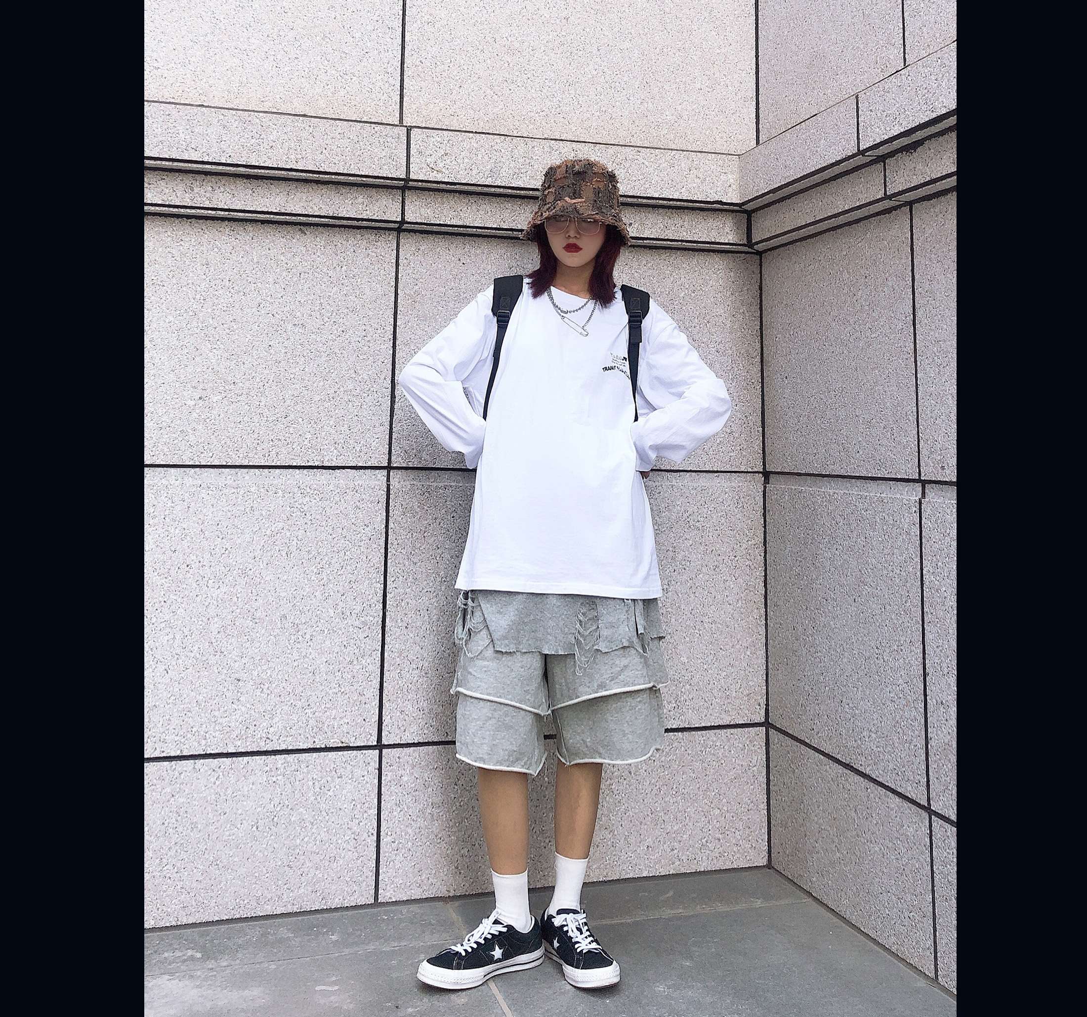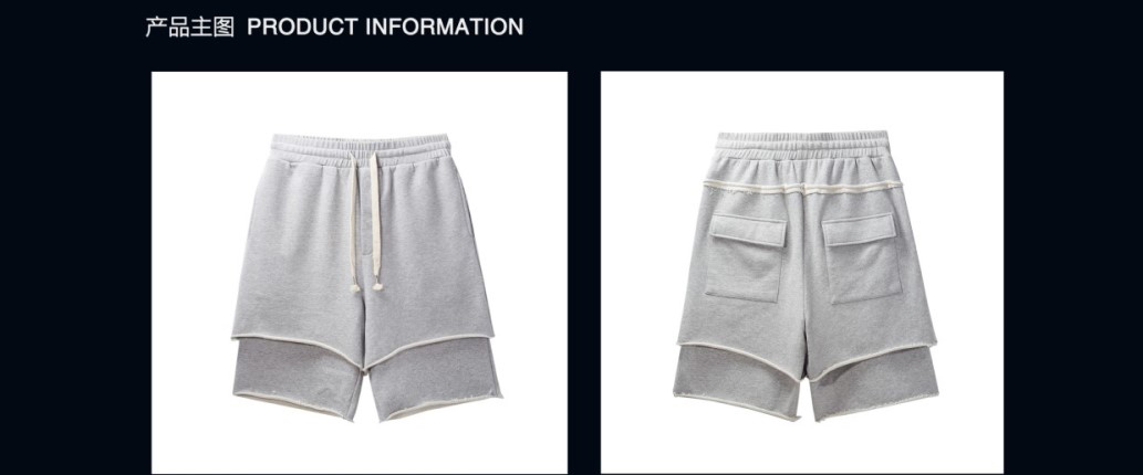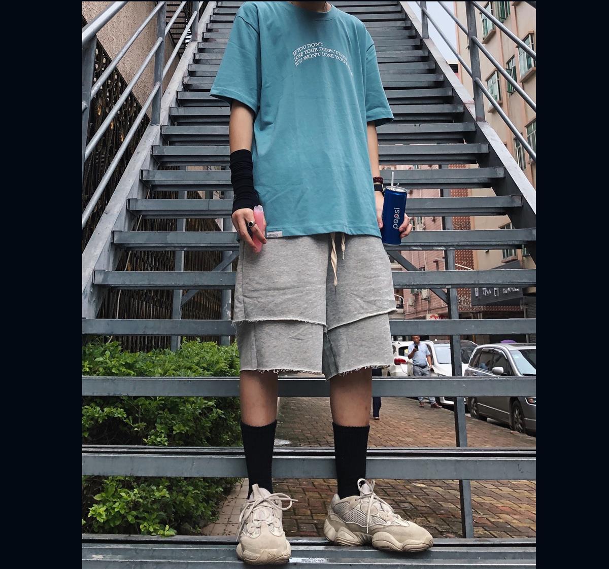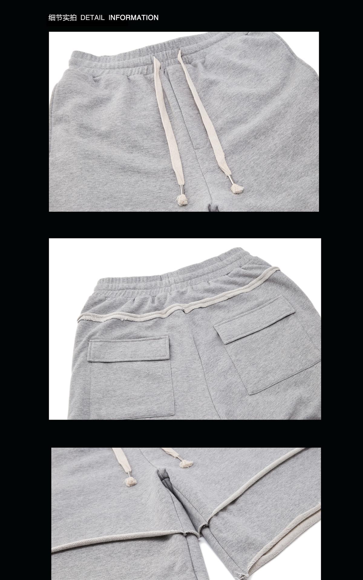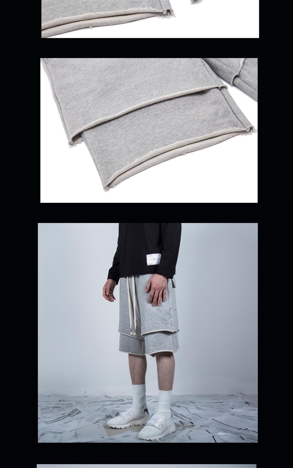 PCLP(PERCLIPS) 灰色假两件双层短裤 五分裤毛边宽松抽绳高街