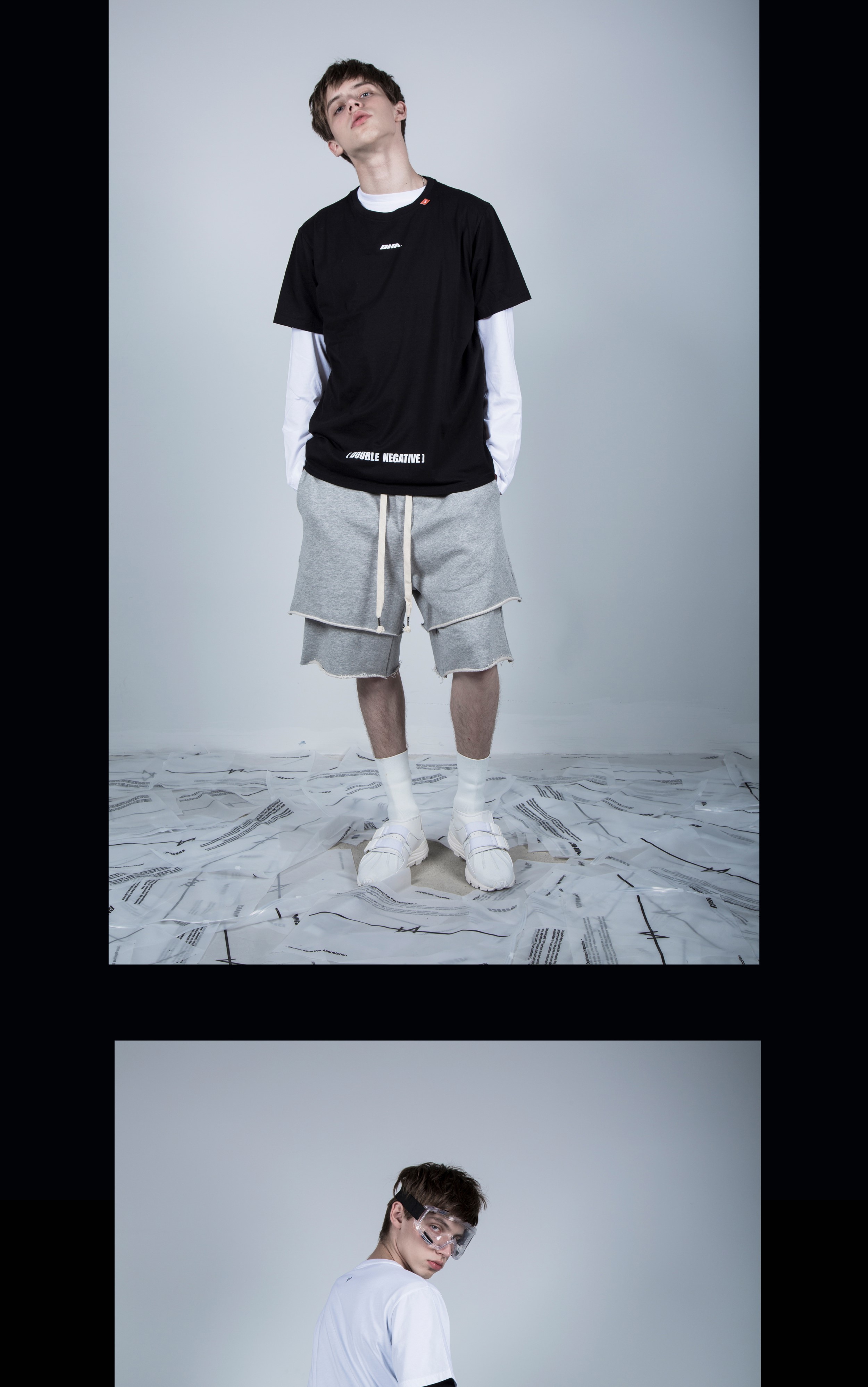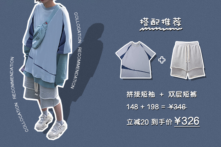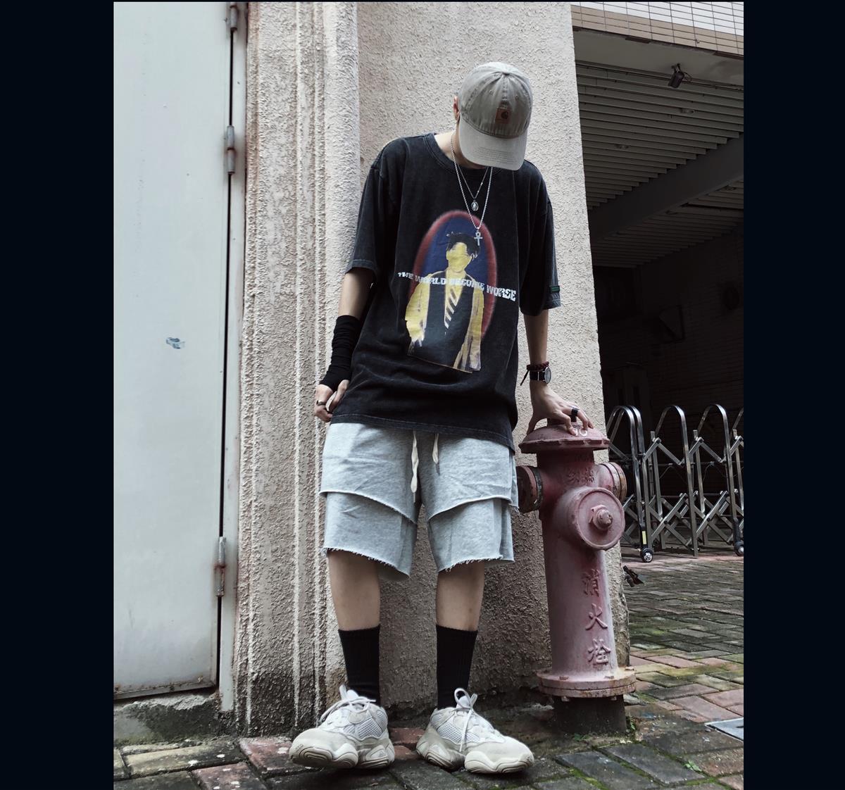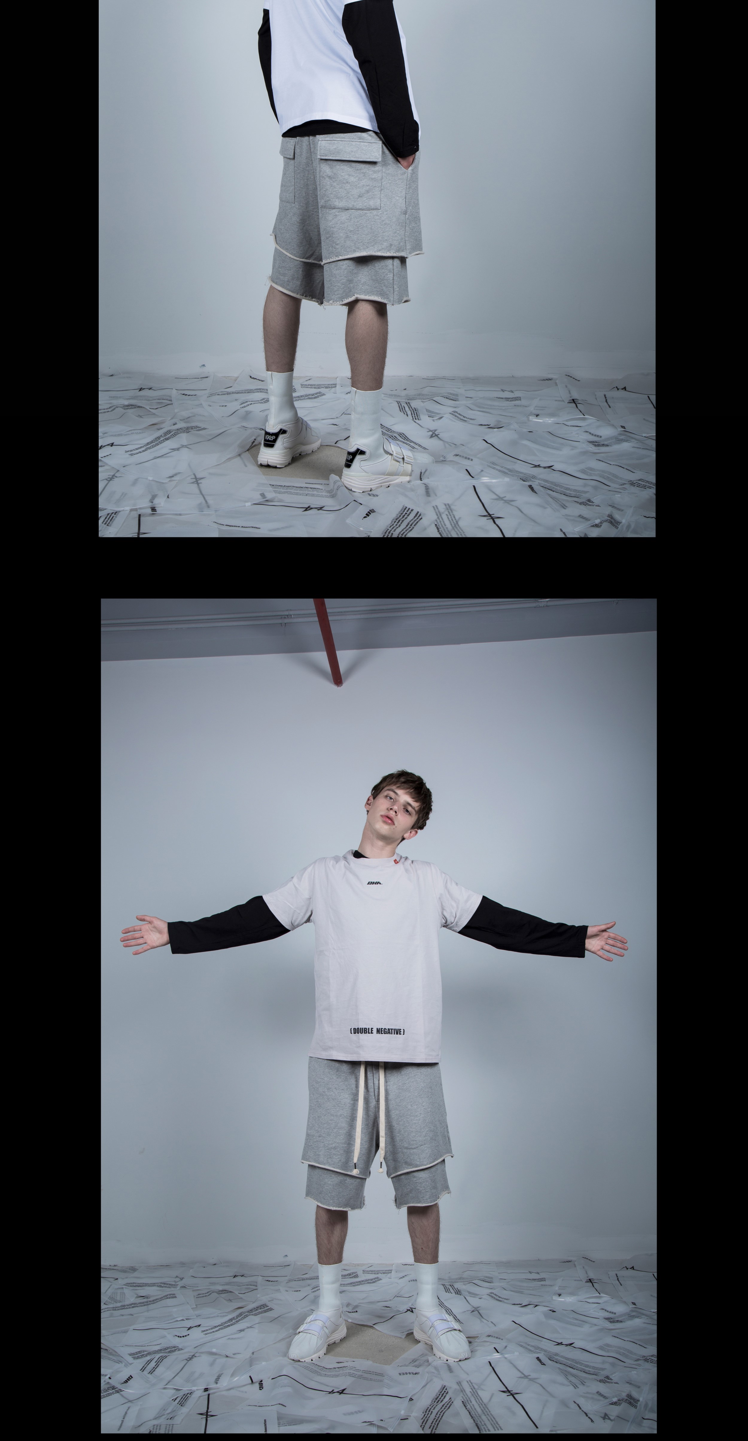 PCLP(PERCLIPS) 灰色假两件双层短裤 五分裤毛边宽松抽绳高街