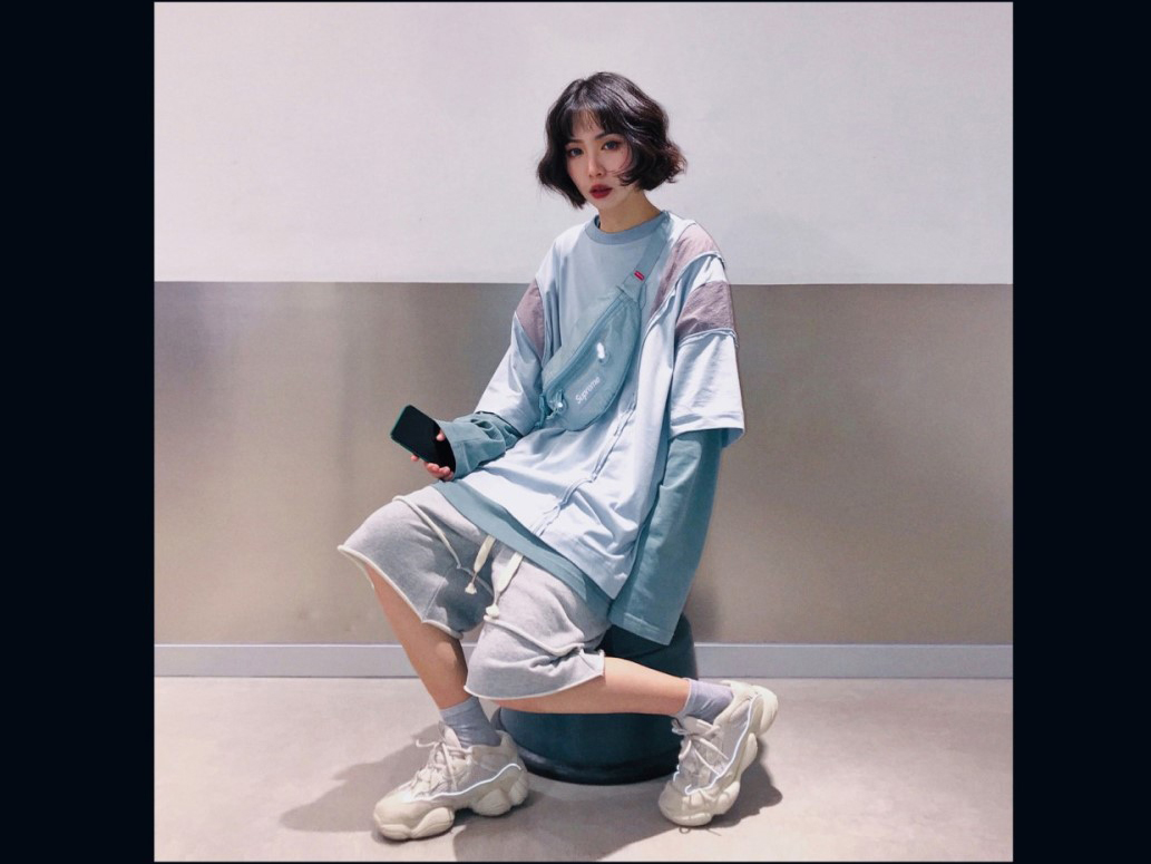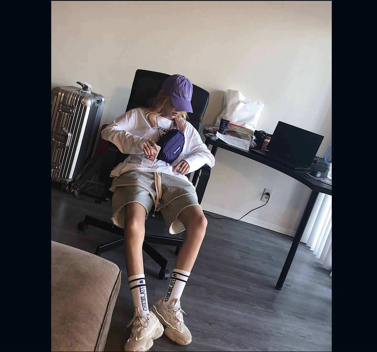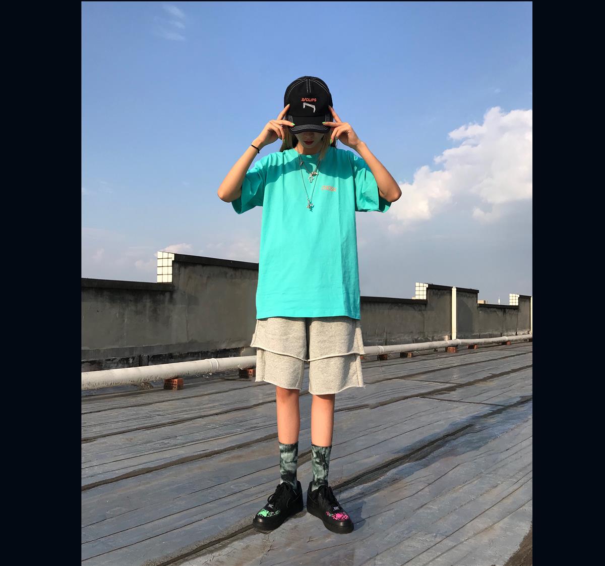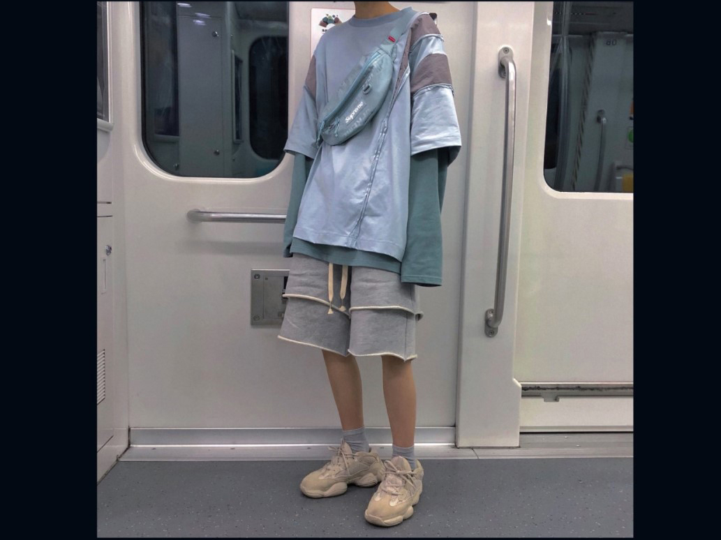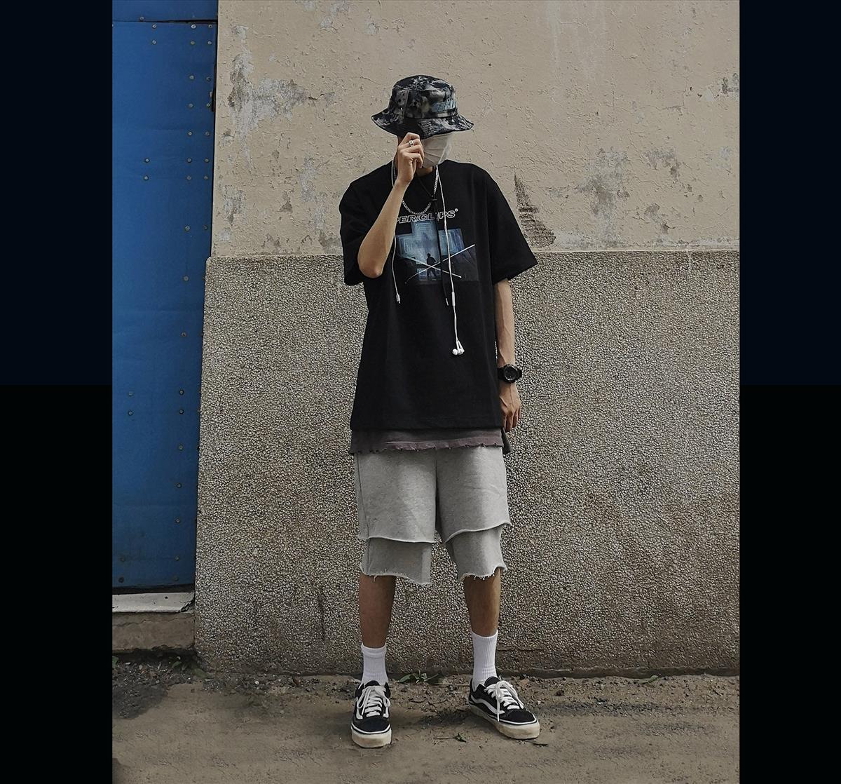 PCLP(PERCLIPS) 灰色假两件双层短裤 五分裤毛边宽松抽绳高街
