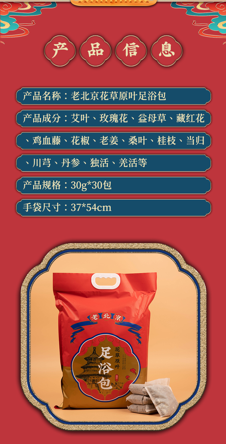老北京足浴包 摘取花草原叶 无纺布袋 独立小包装 20味草药 30g*30包