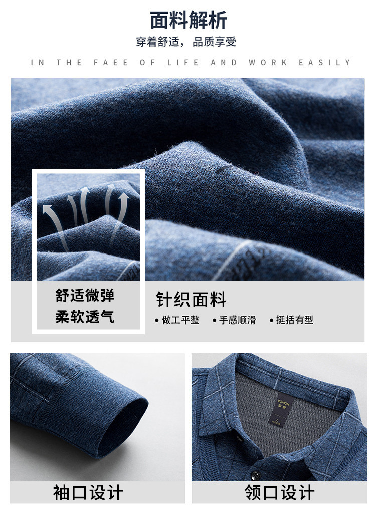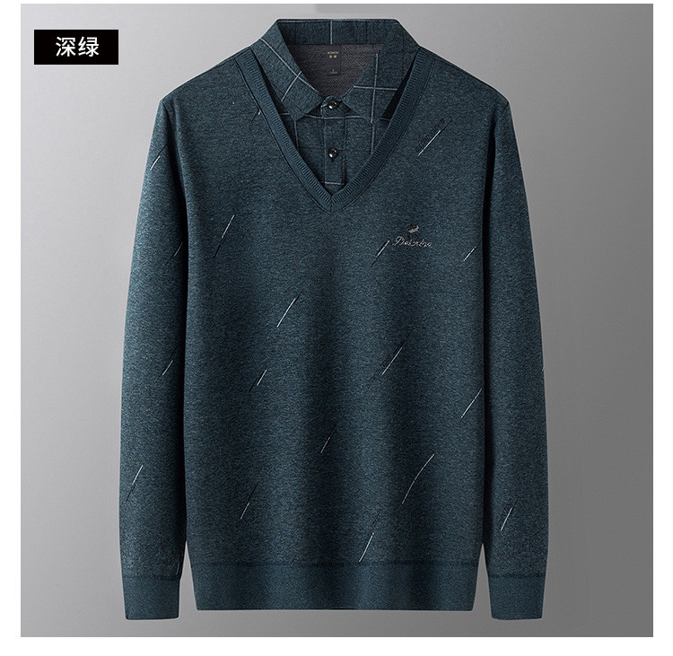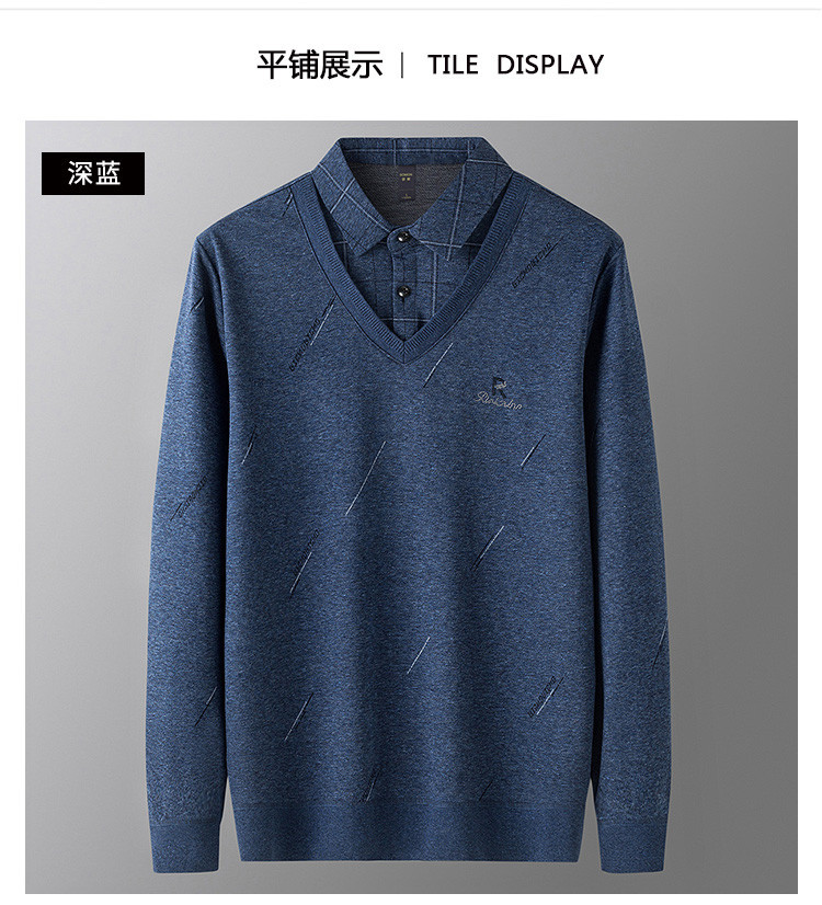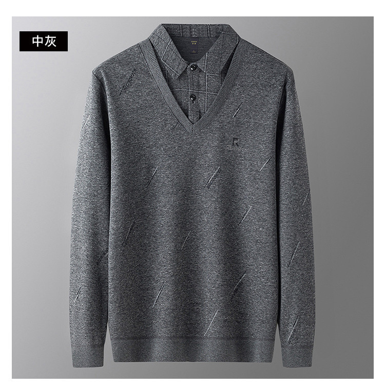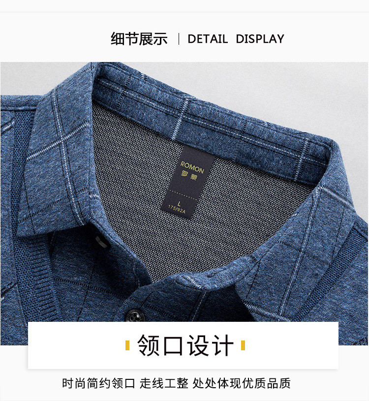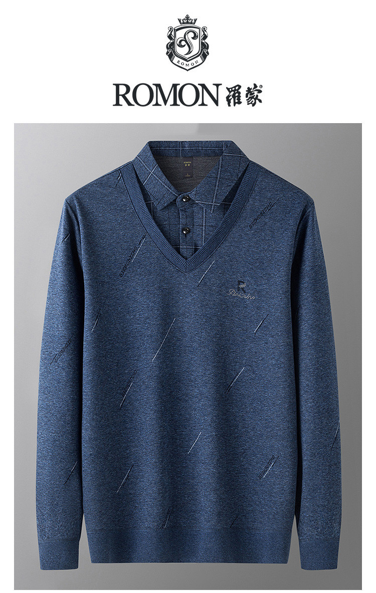 罗蒙假两件男士衬衣领针织衫男百搭休闲通勤斜纹长袖polo衫男