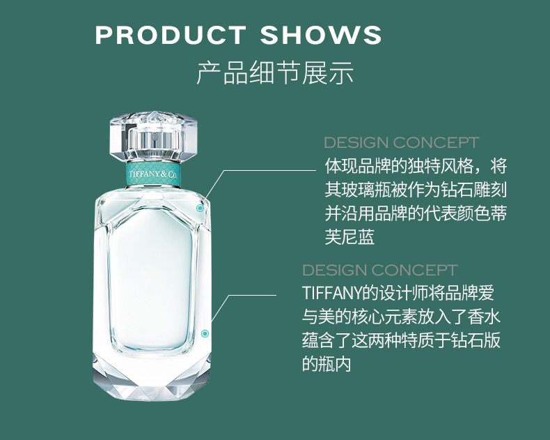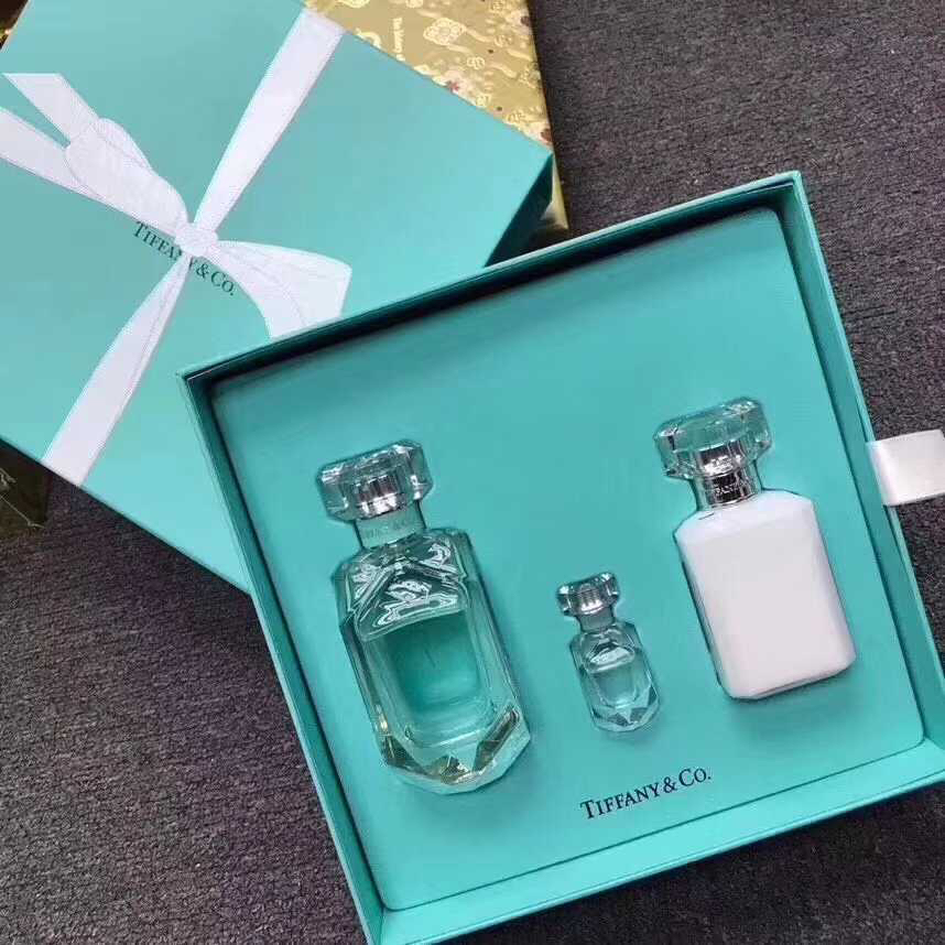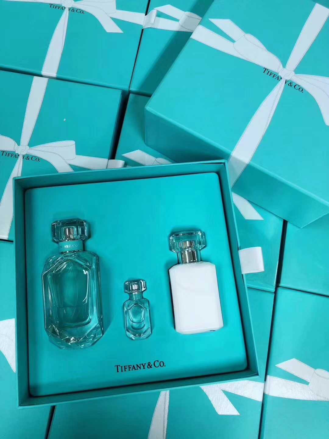 法国蒂芙尼Coty合作款钻石瓶香水三件套(正装75ml+Q版香水5ml+同款香味身体乳100ml)