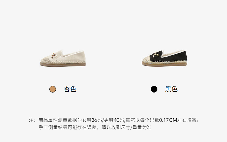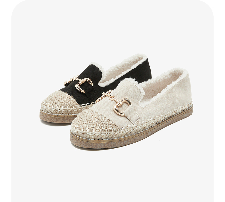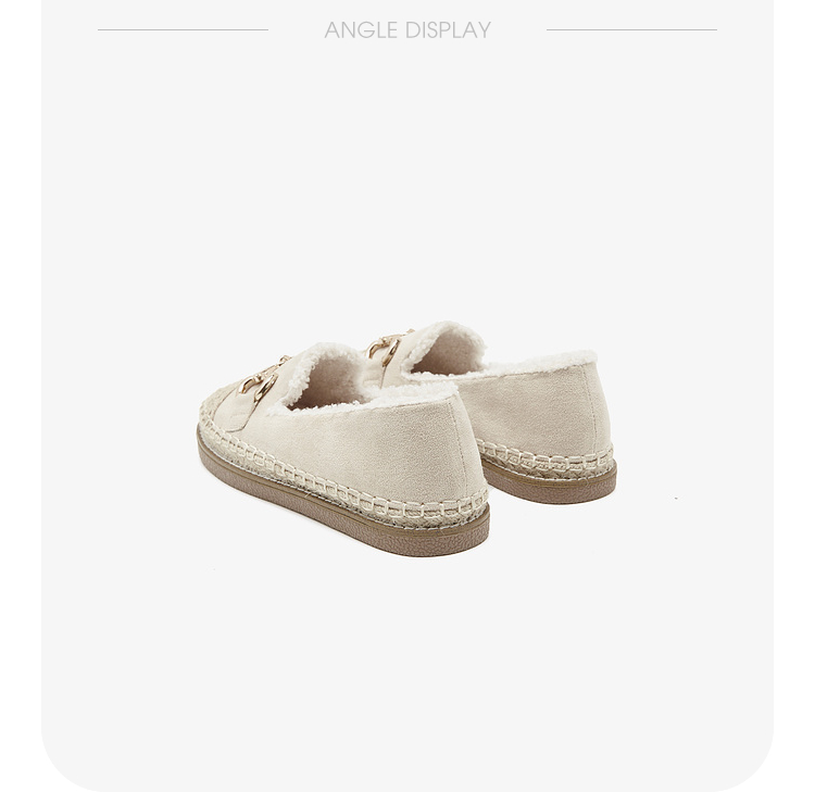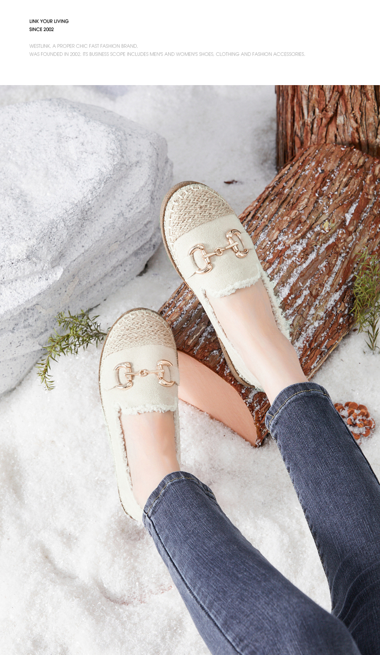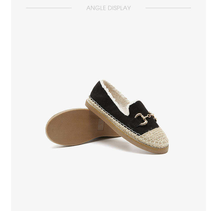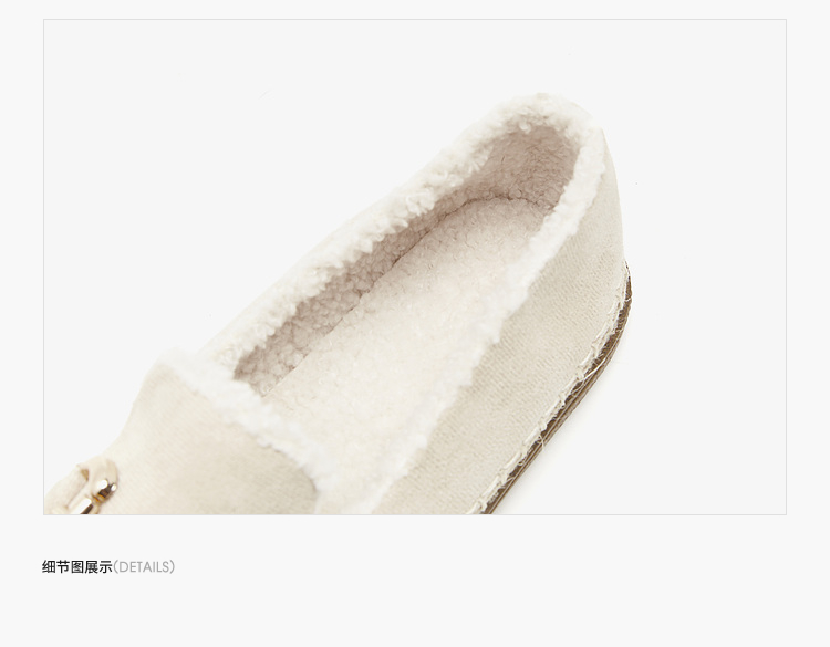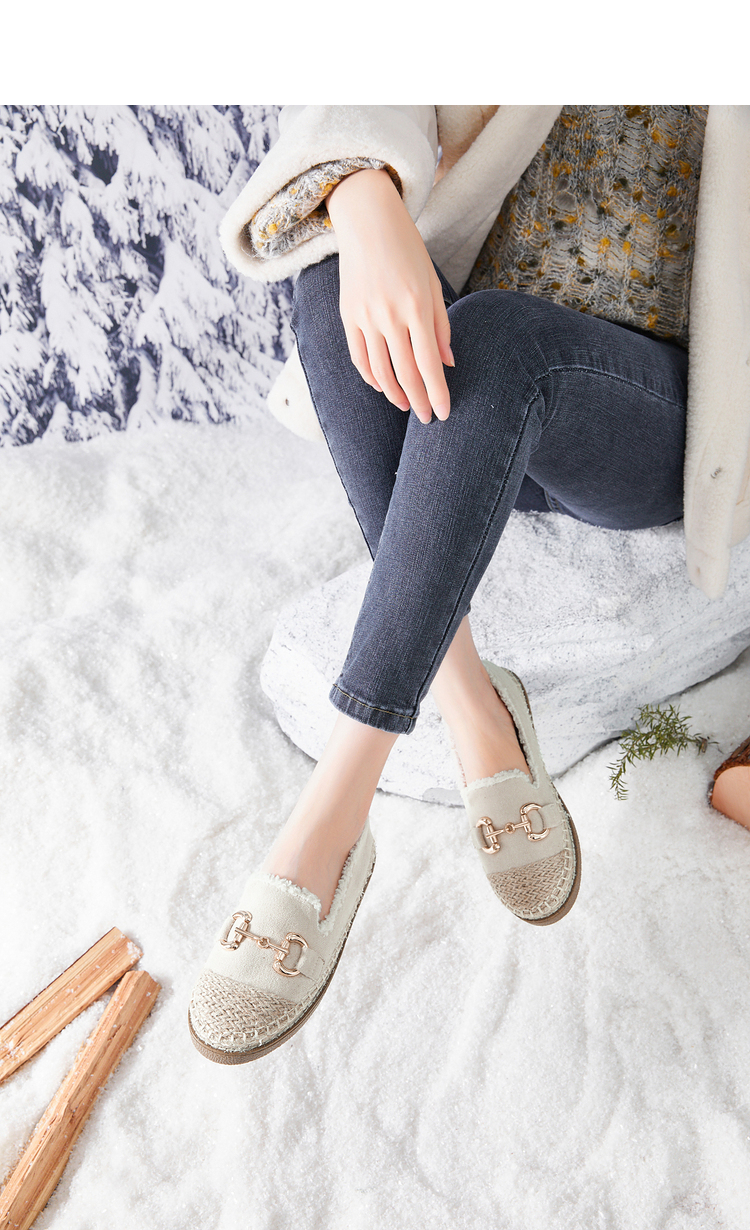 西遇一脚蹬渔夫鞋女新款冬季法式金扣乐福鞋平底加绒毛毛鞋V0034436
