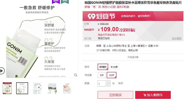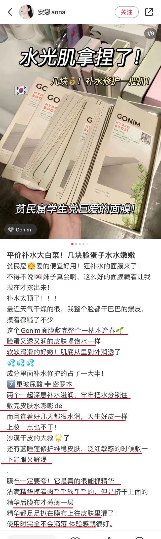 商品名称:【清仓好价】韩国Gonim觅境之源水风暴面膜10片装 /*3