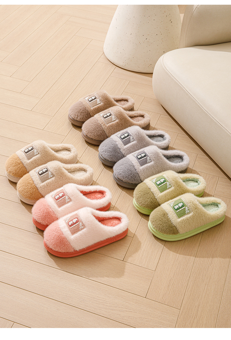「“暴富”款!五色可选」冬季棉拖鞋女家居防滑耐磨舒适毛绒保暖月子厚底室内情侣软棉拖男居家布艺