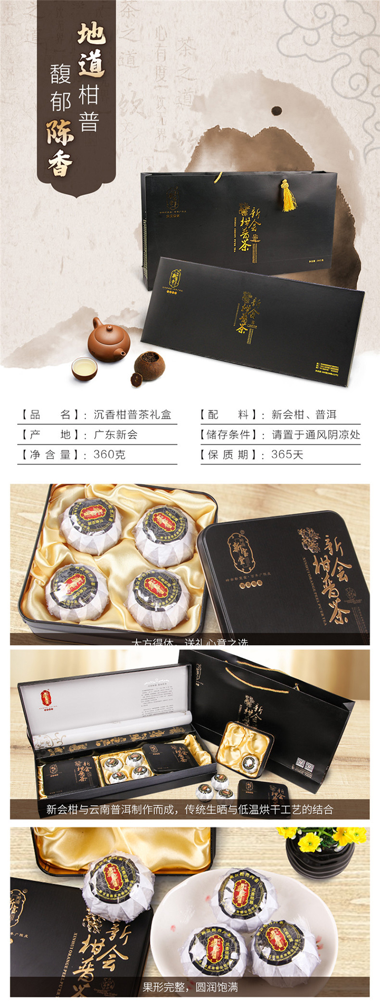 新宝堂 沉香盛世柑普茶礼盒 新会大红柑普洱茶熟茶礼盒 360克(商品不支持无理由退货)