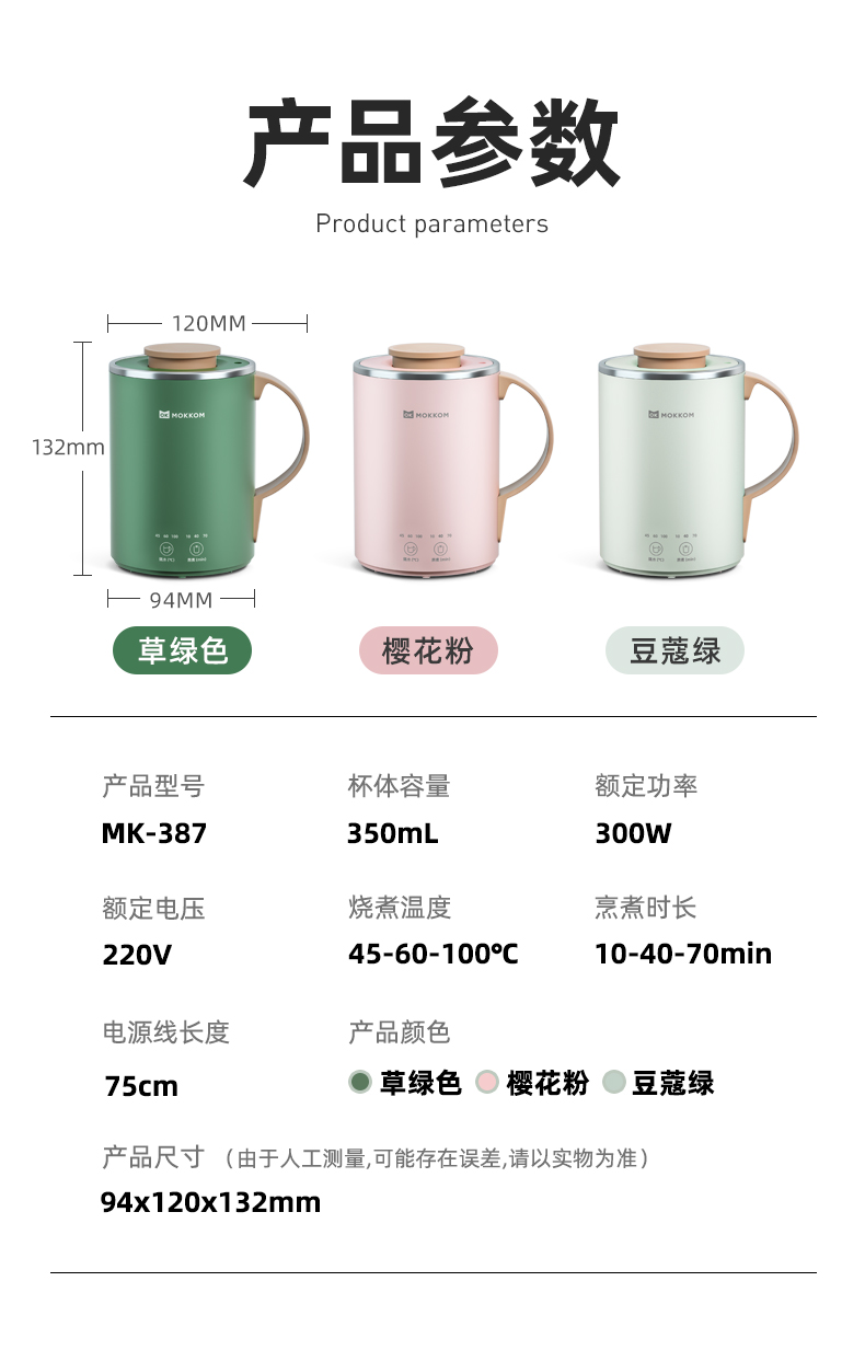 【自营】MOKKOM磨客升级款元气养生杯热水壶烧水杯电热杯