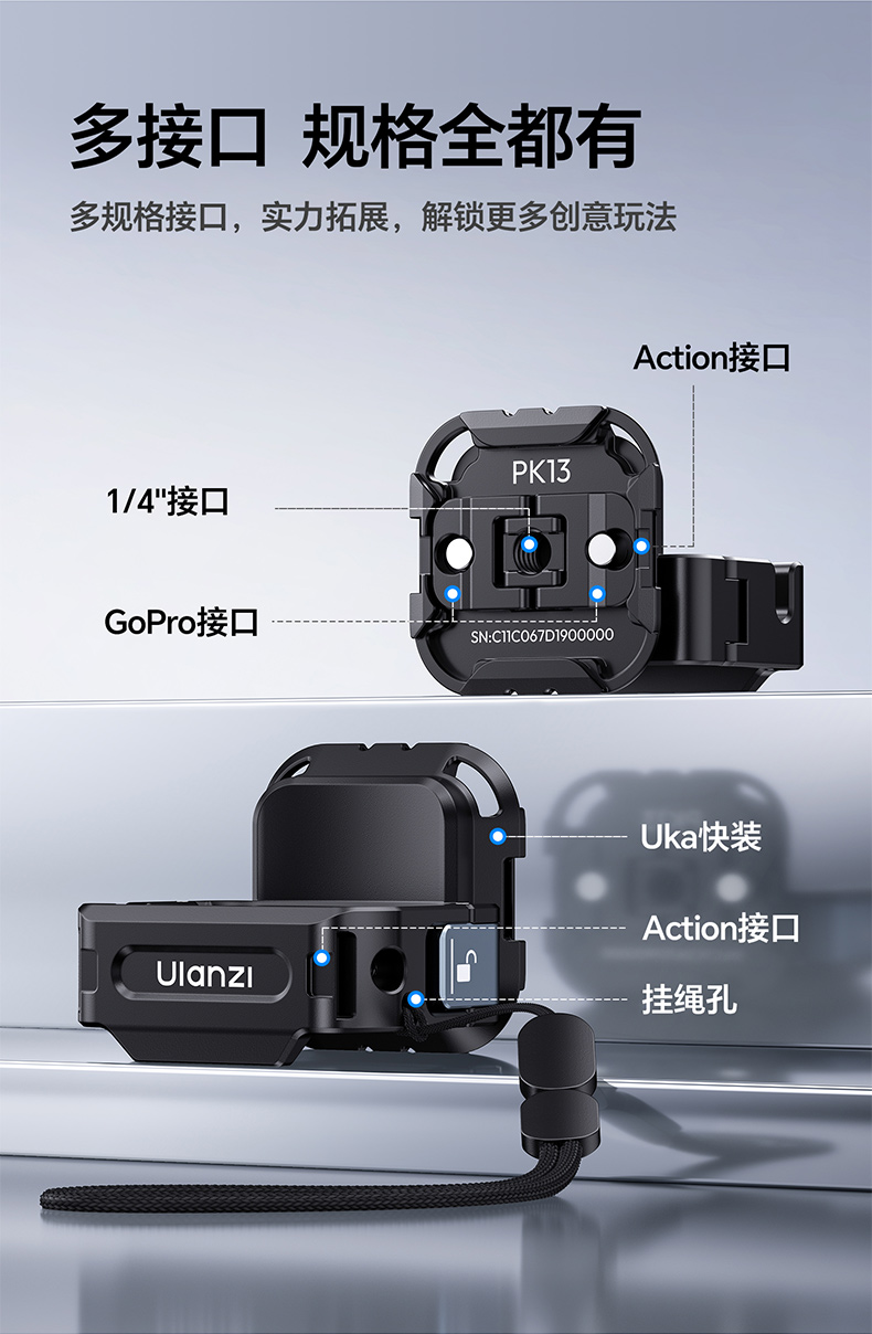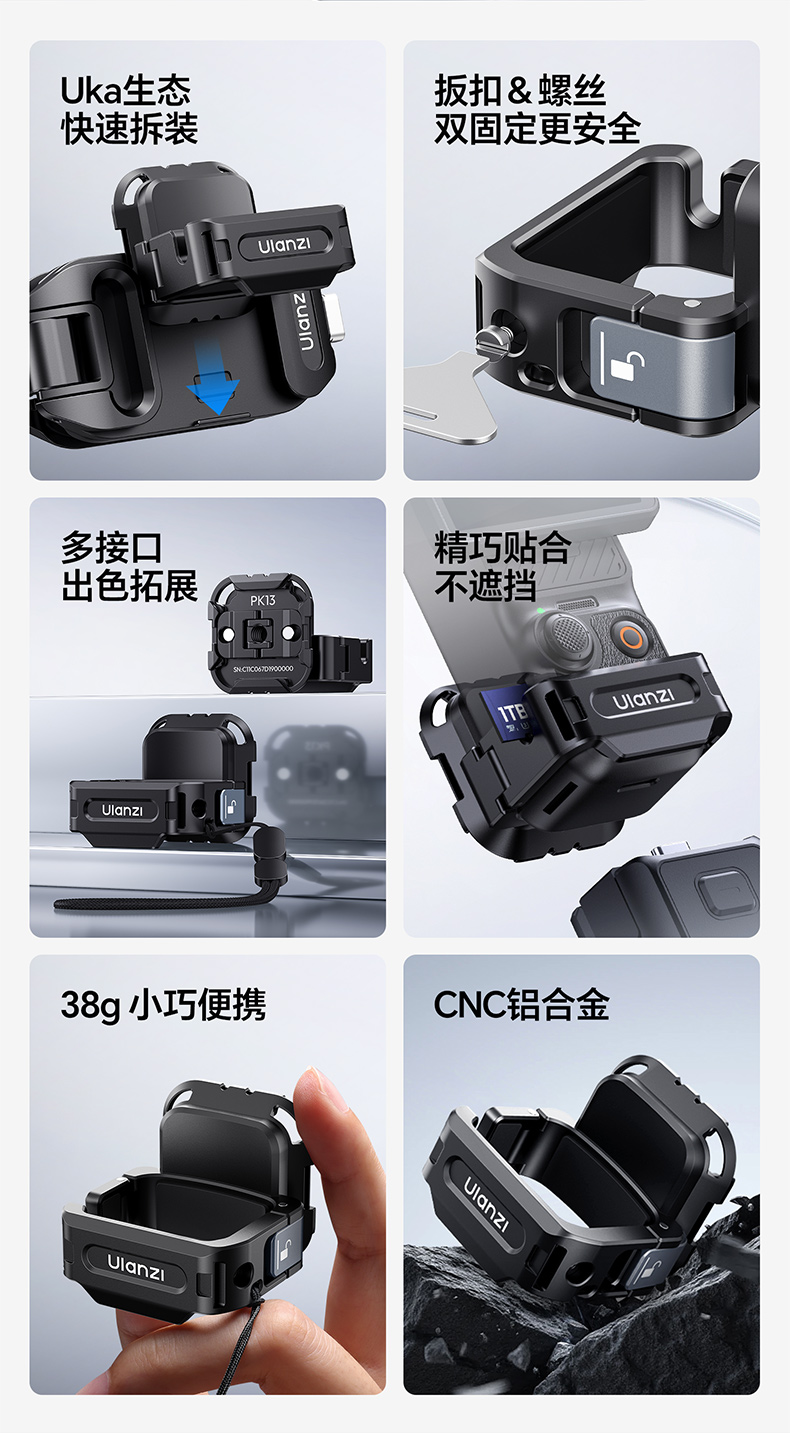 Ulanzi优篮子PK13大疆Pocket3 Uka快装拓展框背包支架多功能保护壳OSMO口袋云台运动相机固定兔笼转接件