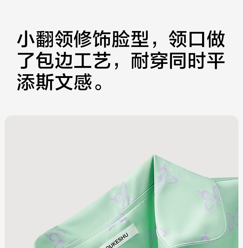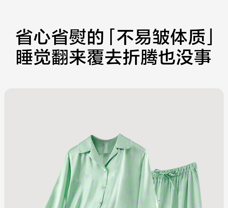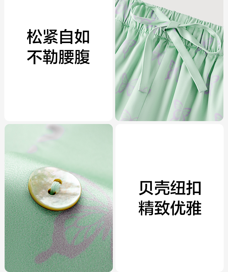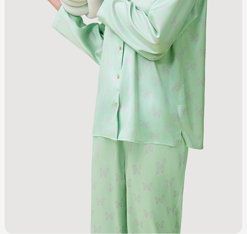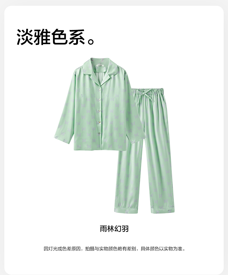有棵树2024新款缎面夏款翻领印花抗皱可外穿家居服女士套装-PJ1057