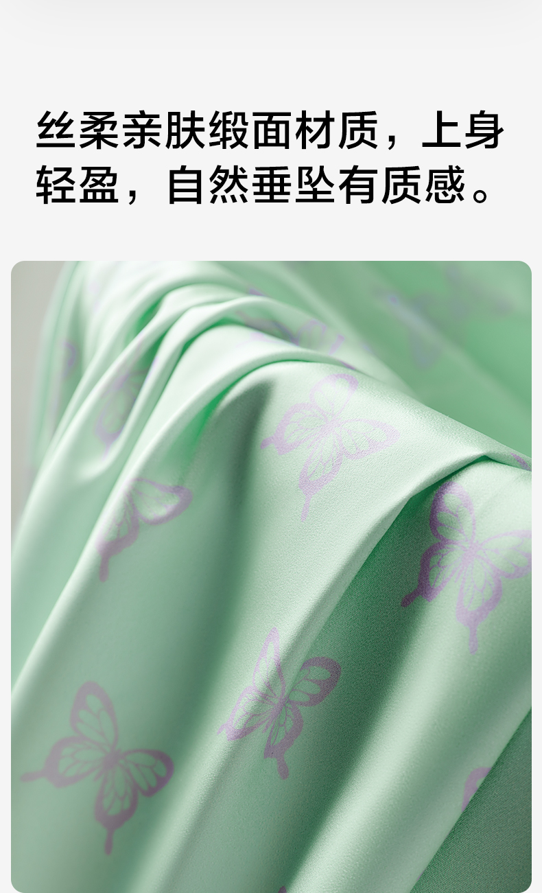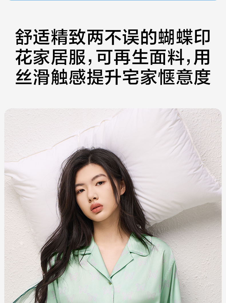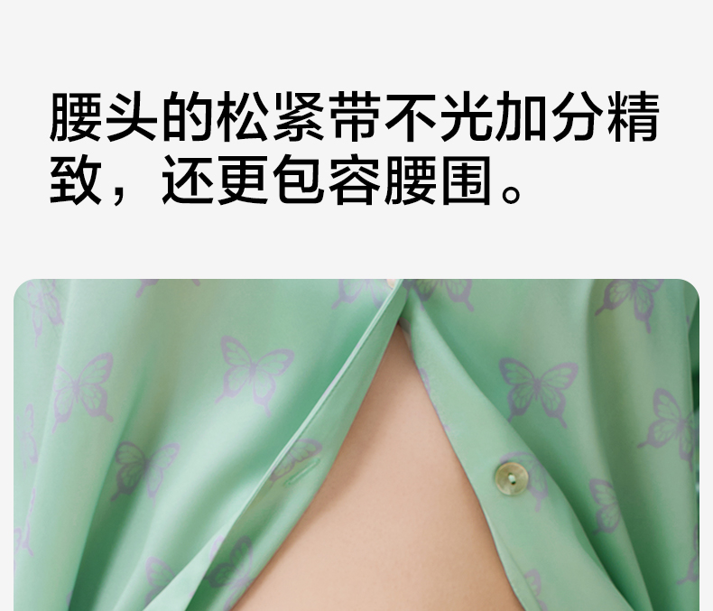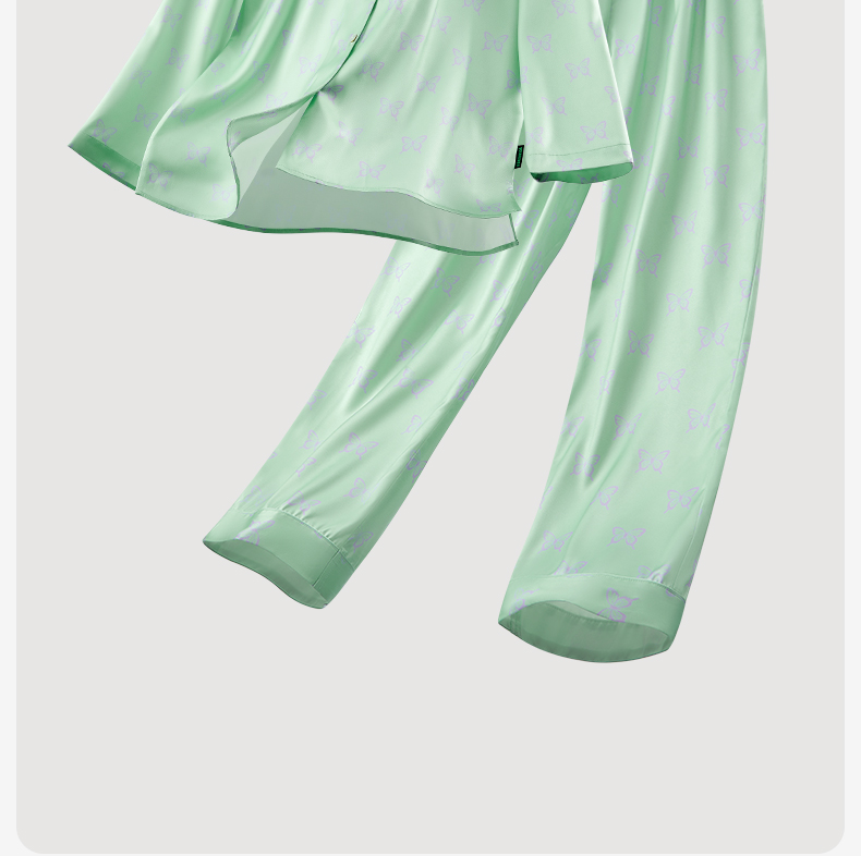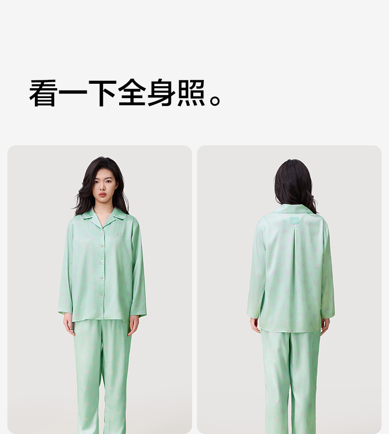 有棵树2024新款缎面夏款翻领印花抗皱可外穿家居服女士套装-PJ1057