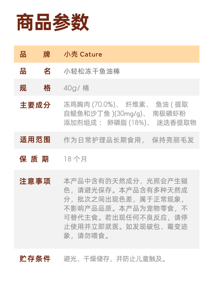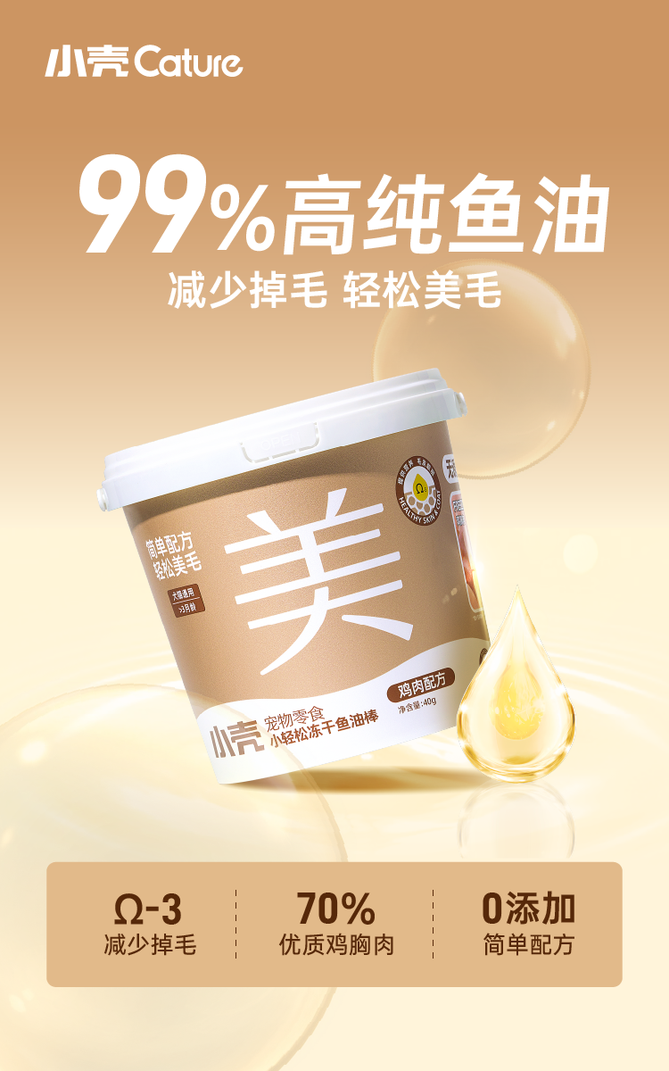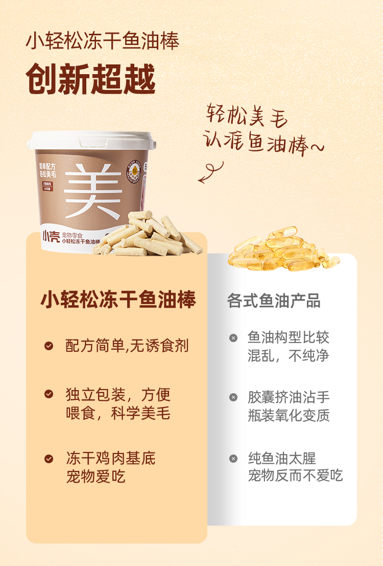 小轻松冻干鱼油棒经典款 40g/桶|犬猫通用 美毛护毛
