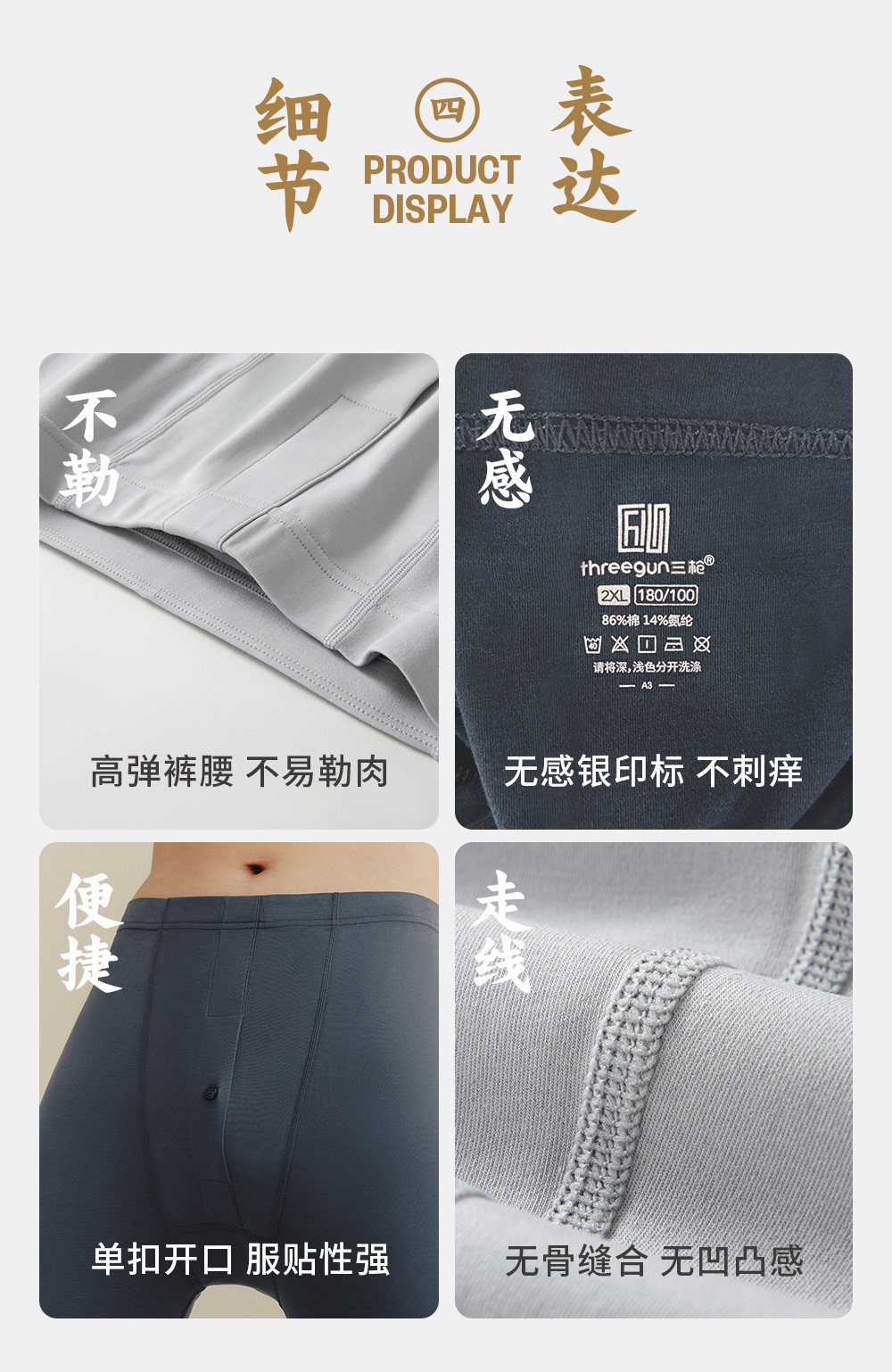 Threegun三枪【匠心系列-120支长绒棉】男打底裤-61325B021