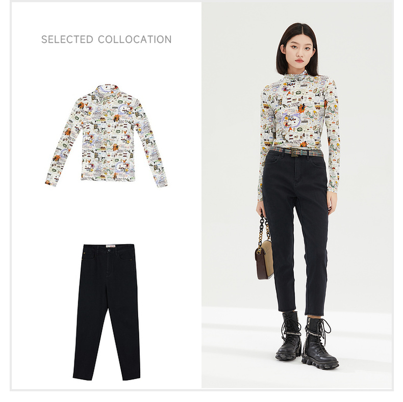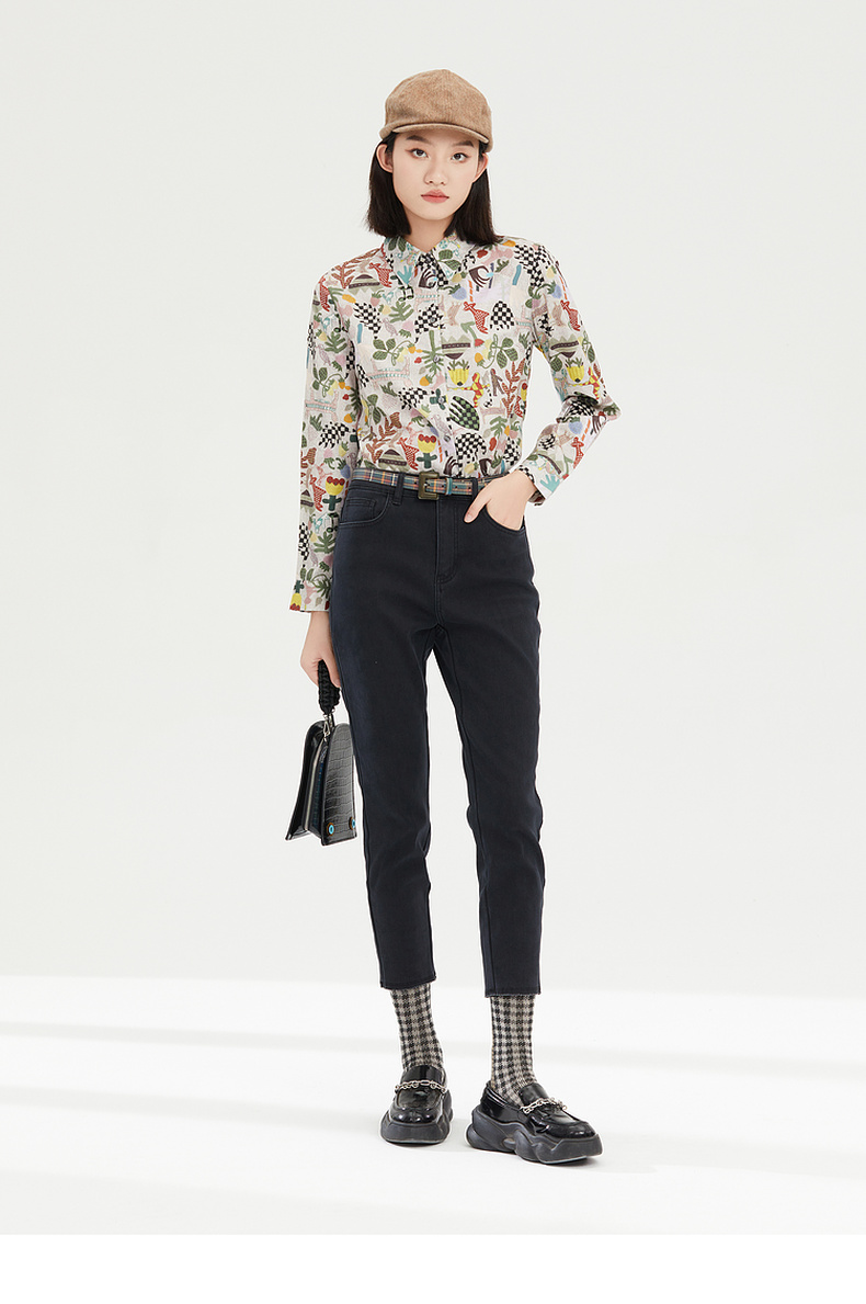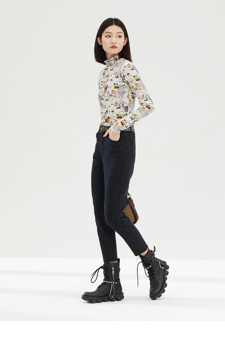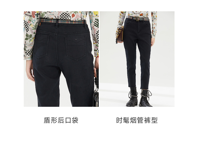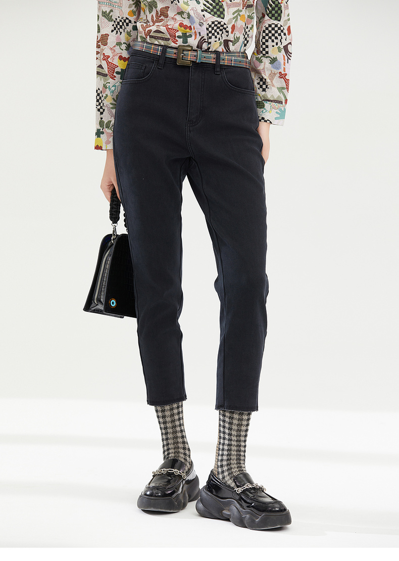谜底加厚牛仔裤女2023冬新款黑色加绒保暖铅笔裤小脚裤239MK7331