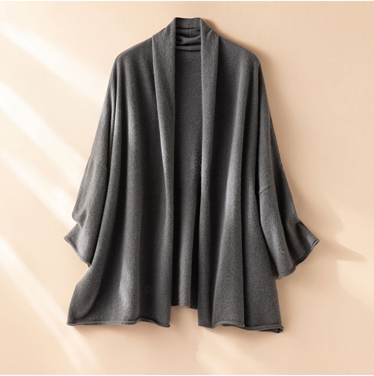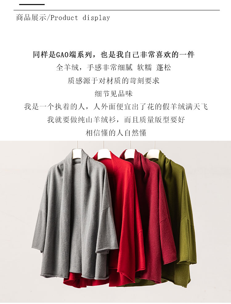 自在如风~100纯山羊绒开衫女休闲百搭披肩针织开衫