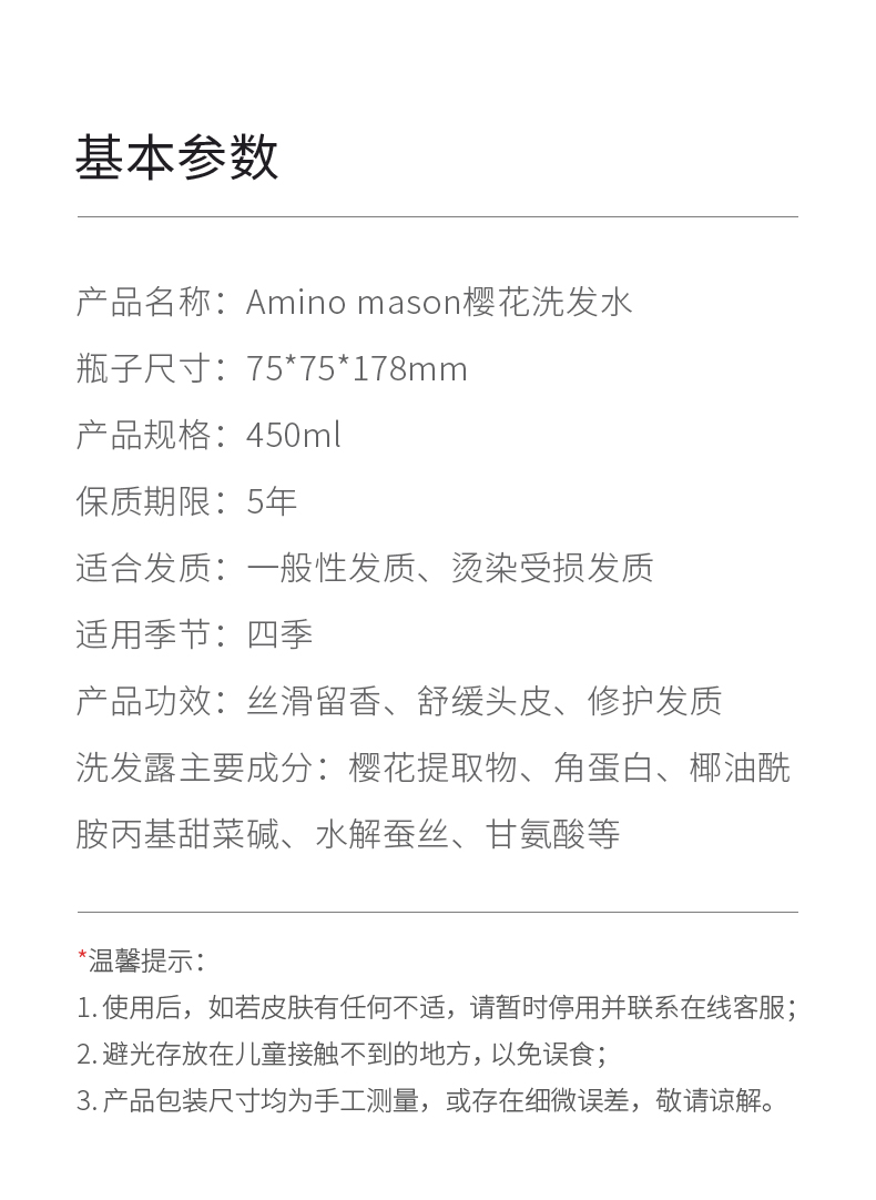 阿蜜浓梅森 洗发水 氨基酸植物精粹润泽洗发水(樱花)450ml