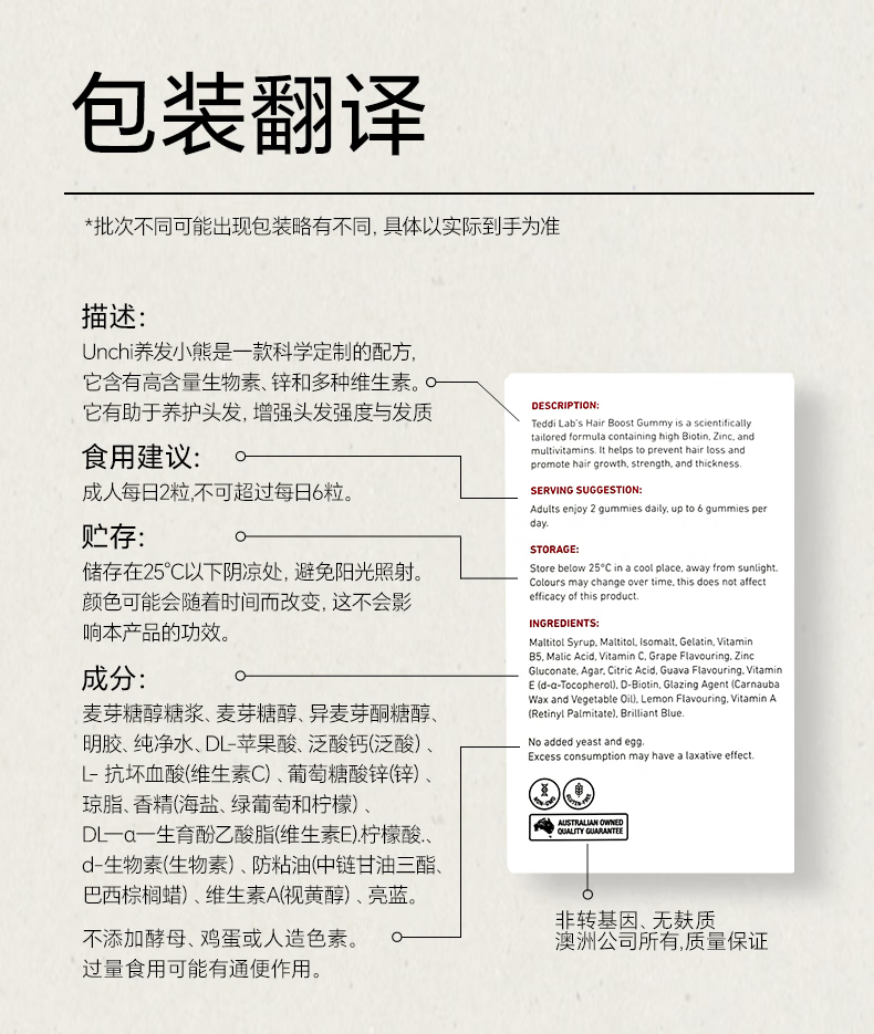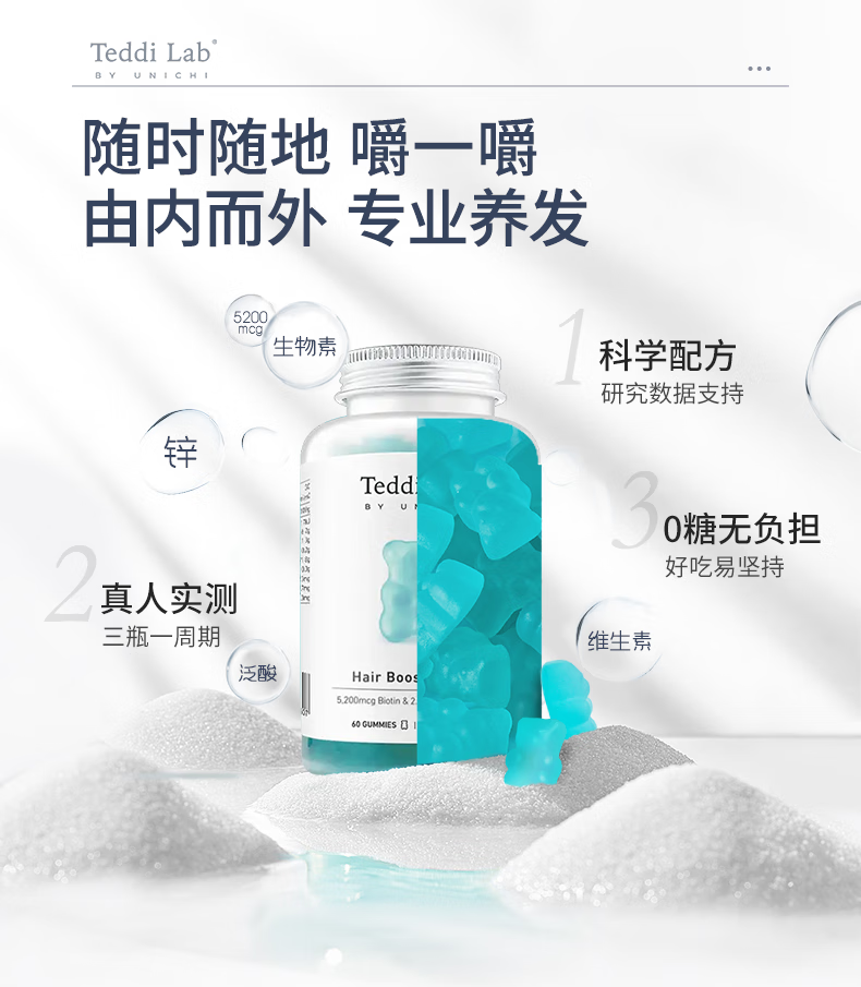 Unichi 养发小熊软糖 60粒 海盐青提味