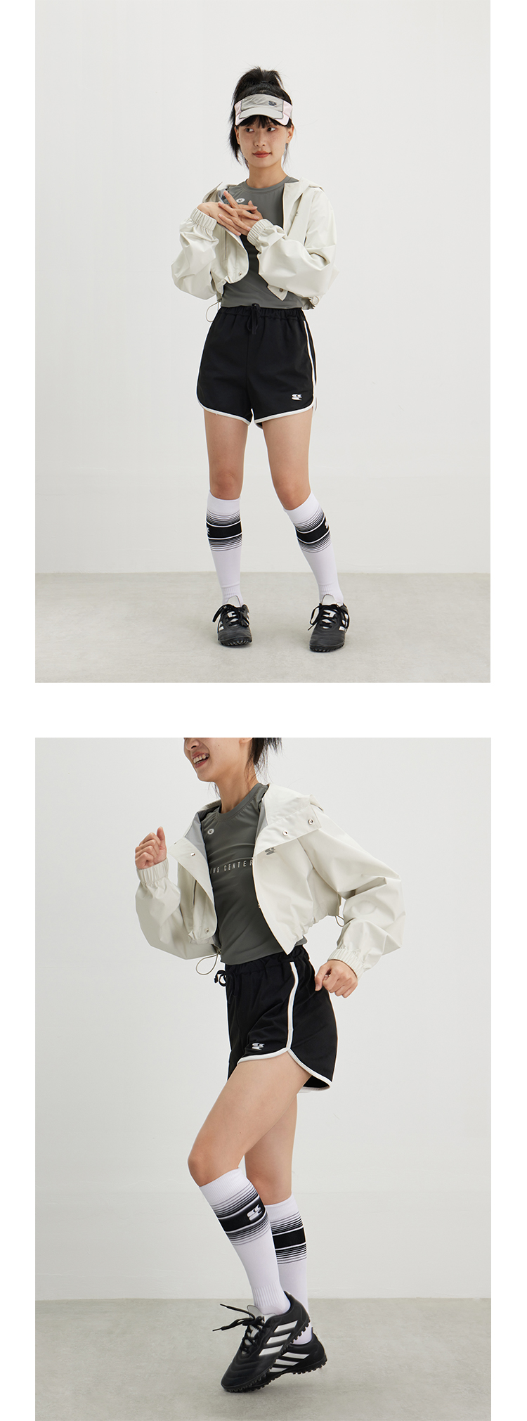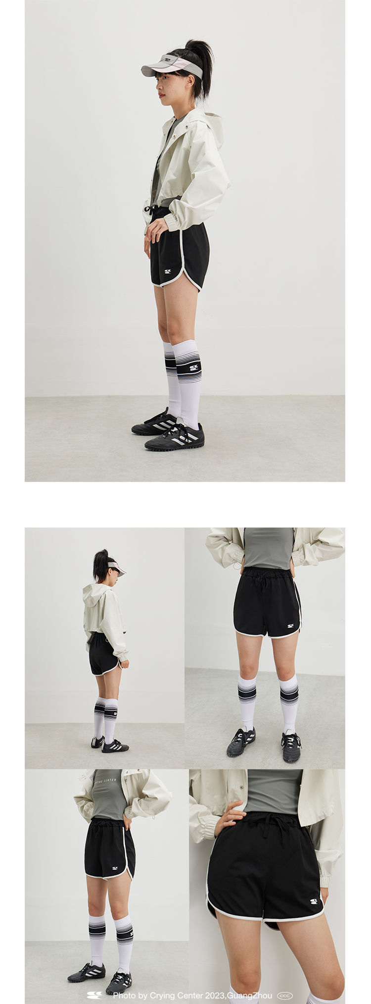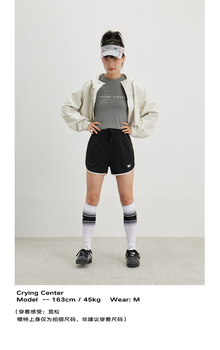 CryingCenter 黑色撞白包边休闲美式校园热裤运动短裤哭喊中心