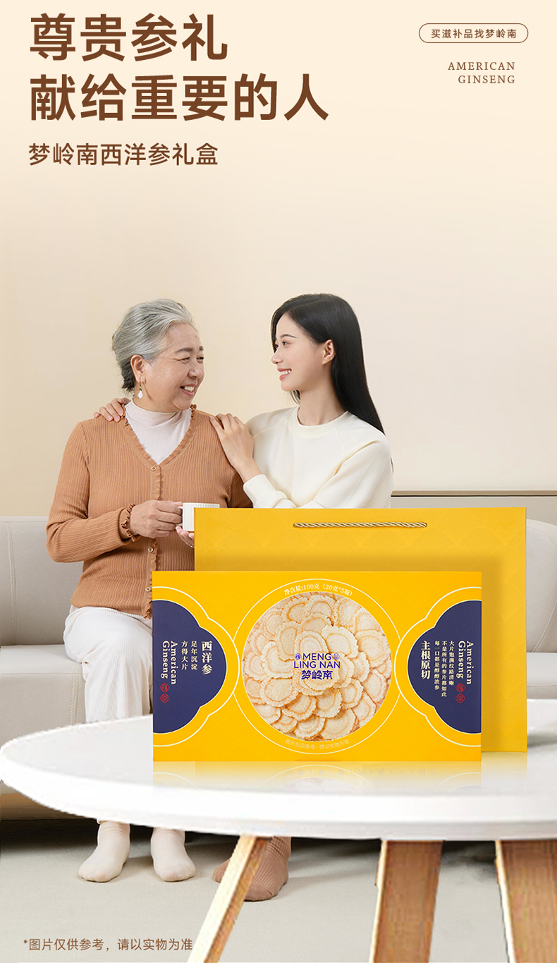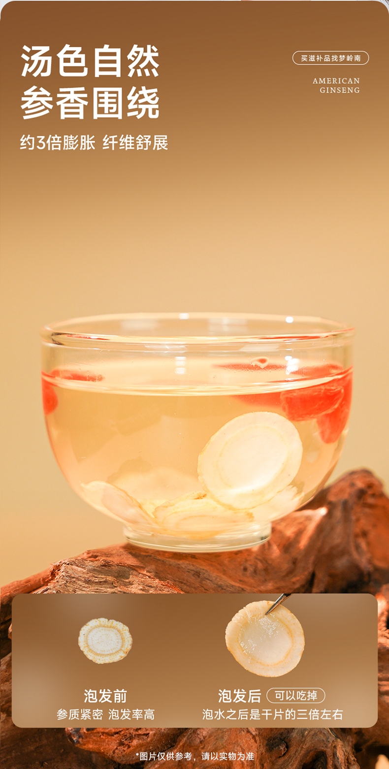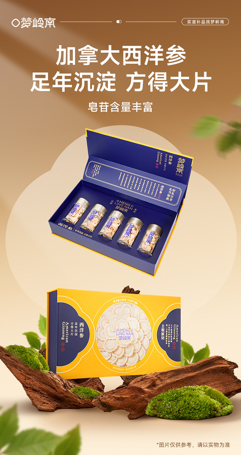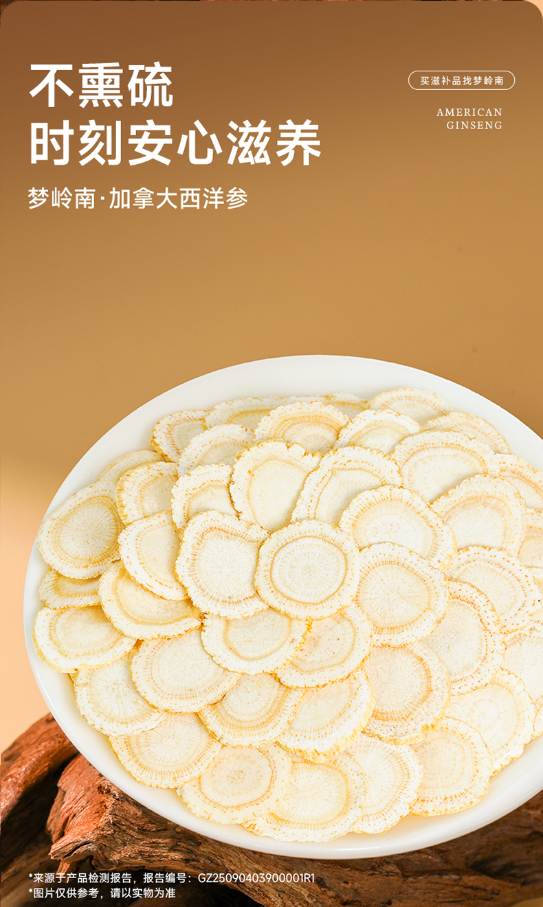【西洋参片 大补元气】梦岭南加拿大西洋参100g装 足龄大片规格 丰富皂苷 泡水煲汤 安心滋补健康