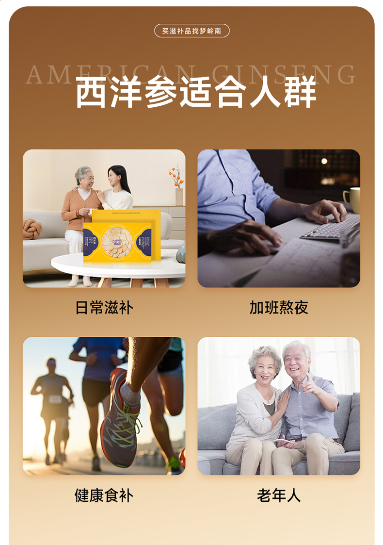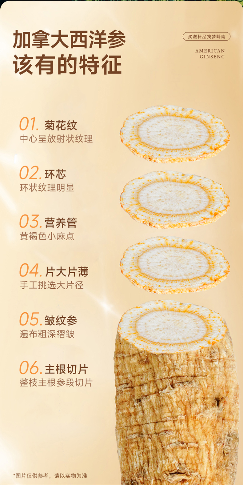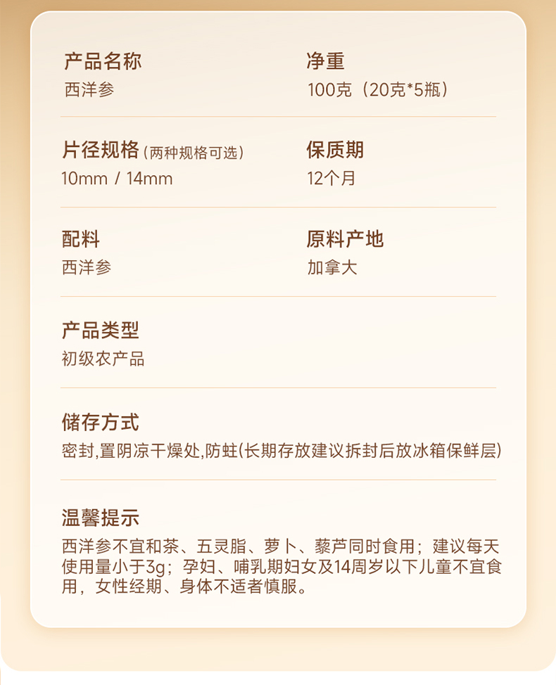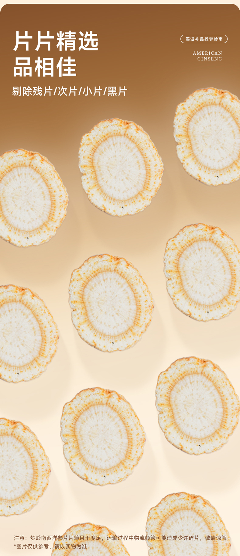 【西洋参片 大补元气】梦岭南加拿大西洋参100g装 足龄大片规格 丰富皂苷 泡水煲汤 安心滋补健康
