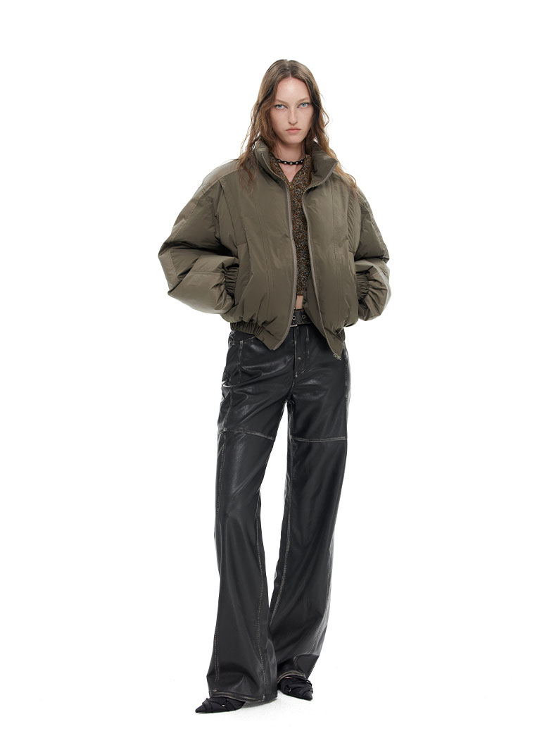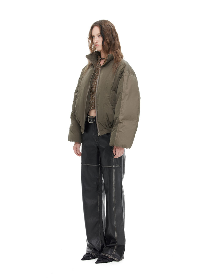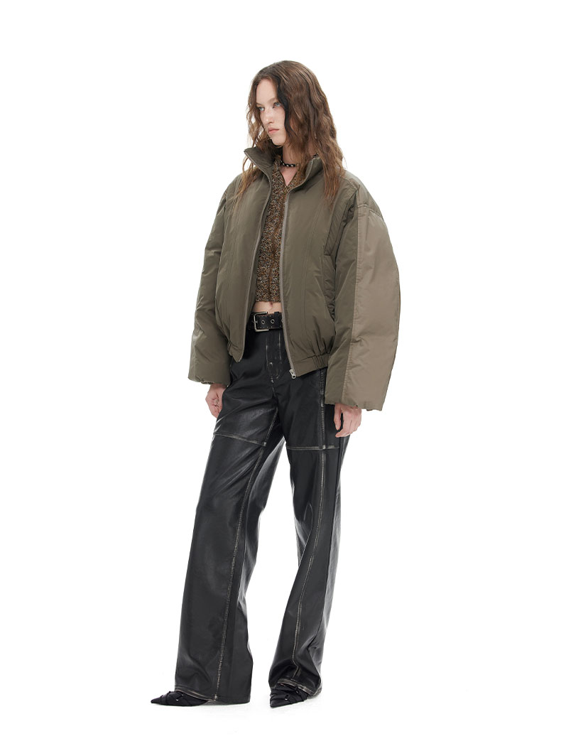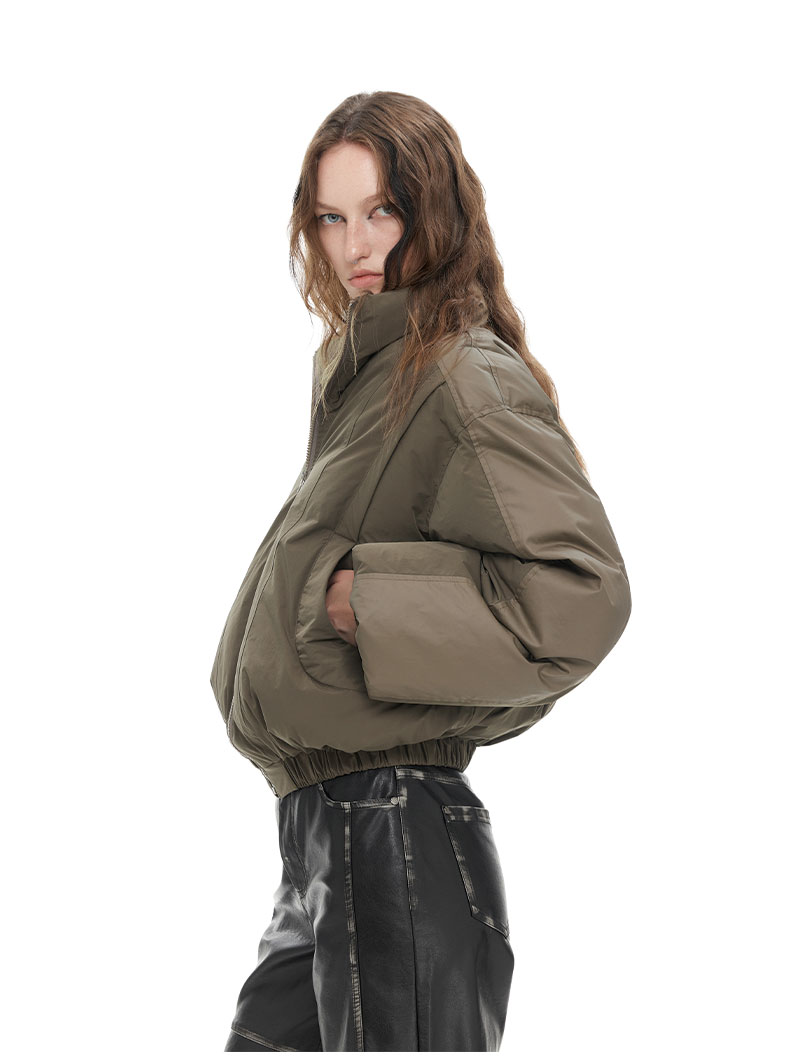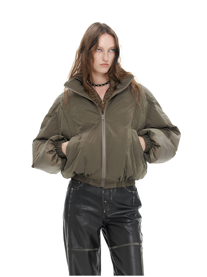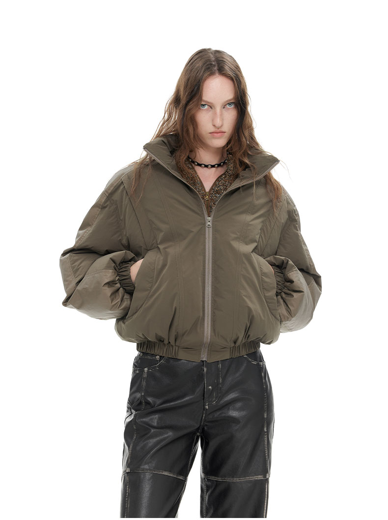 NUTH “小泡芙”|棕色宽松拼接设计感厚款保暖棉服外套女