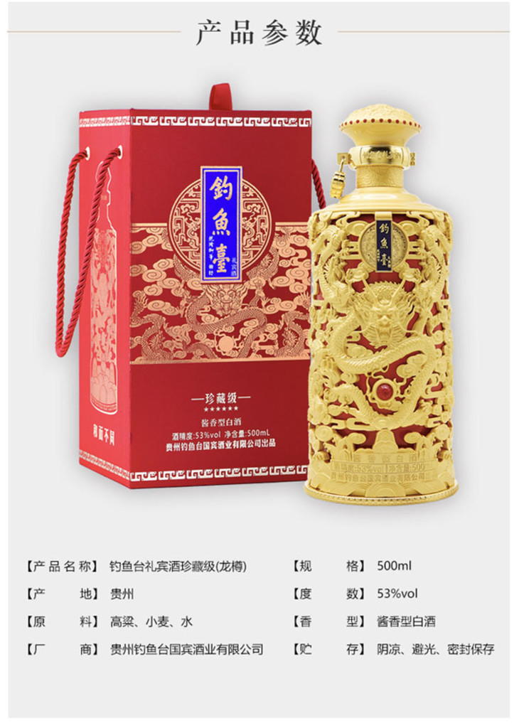 清仓 53°钓鱼台礼宾酒珍藏级酱香型 龙樽 500ml*1瓶