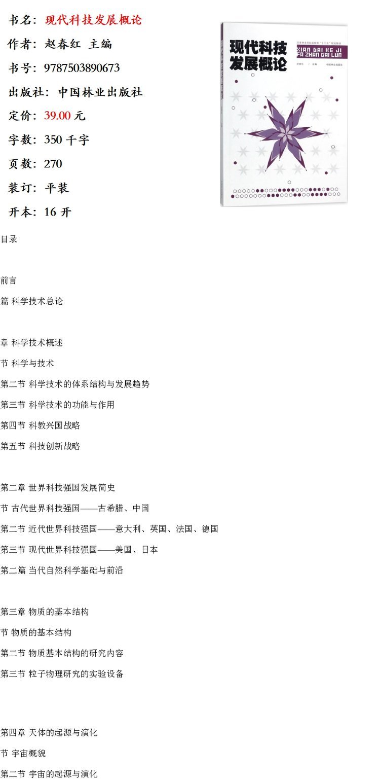 现代科技发展概论 9067 赵春红 国家林业局职业教育十三五规划教材 中国林业出版社 畅销书