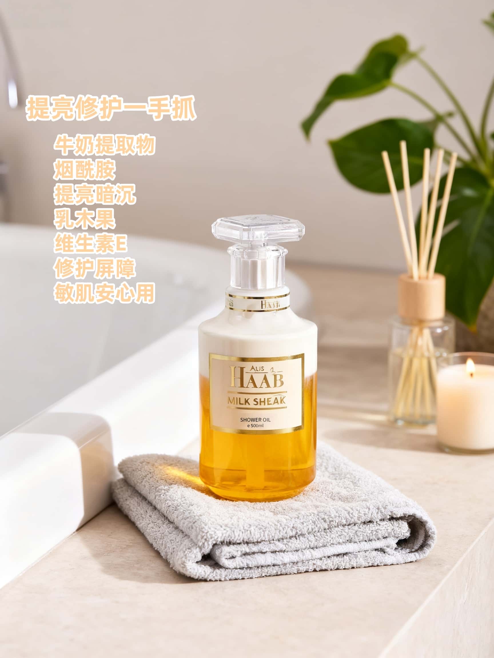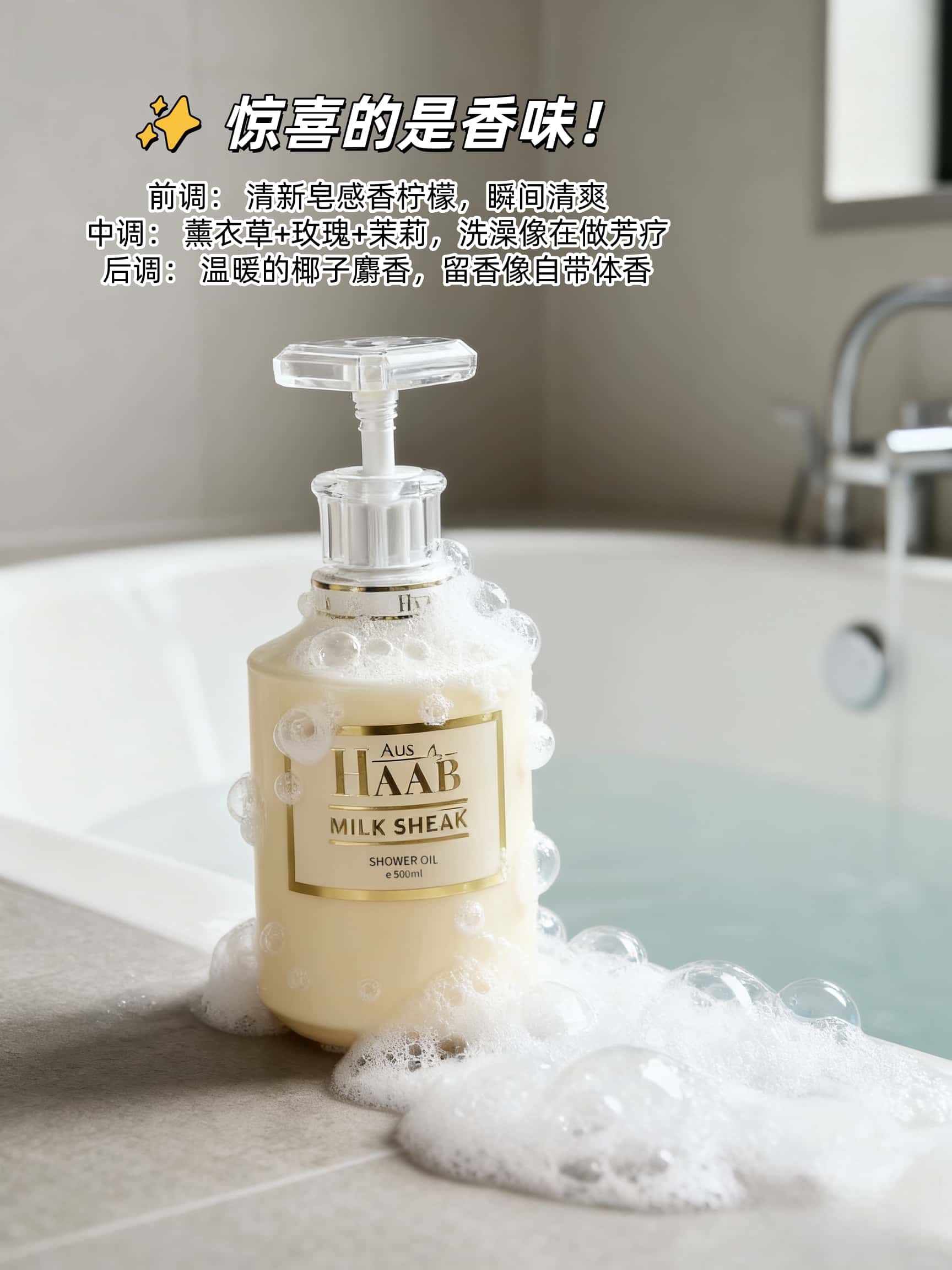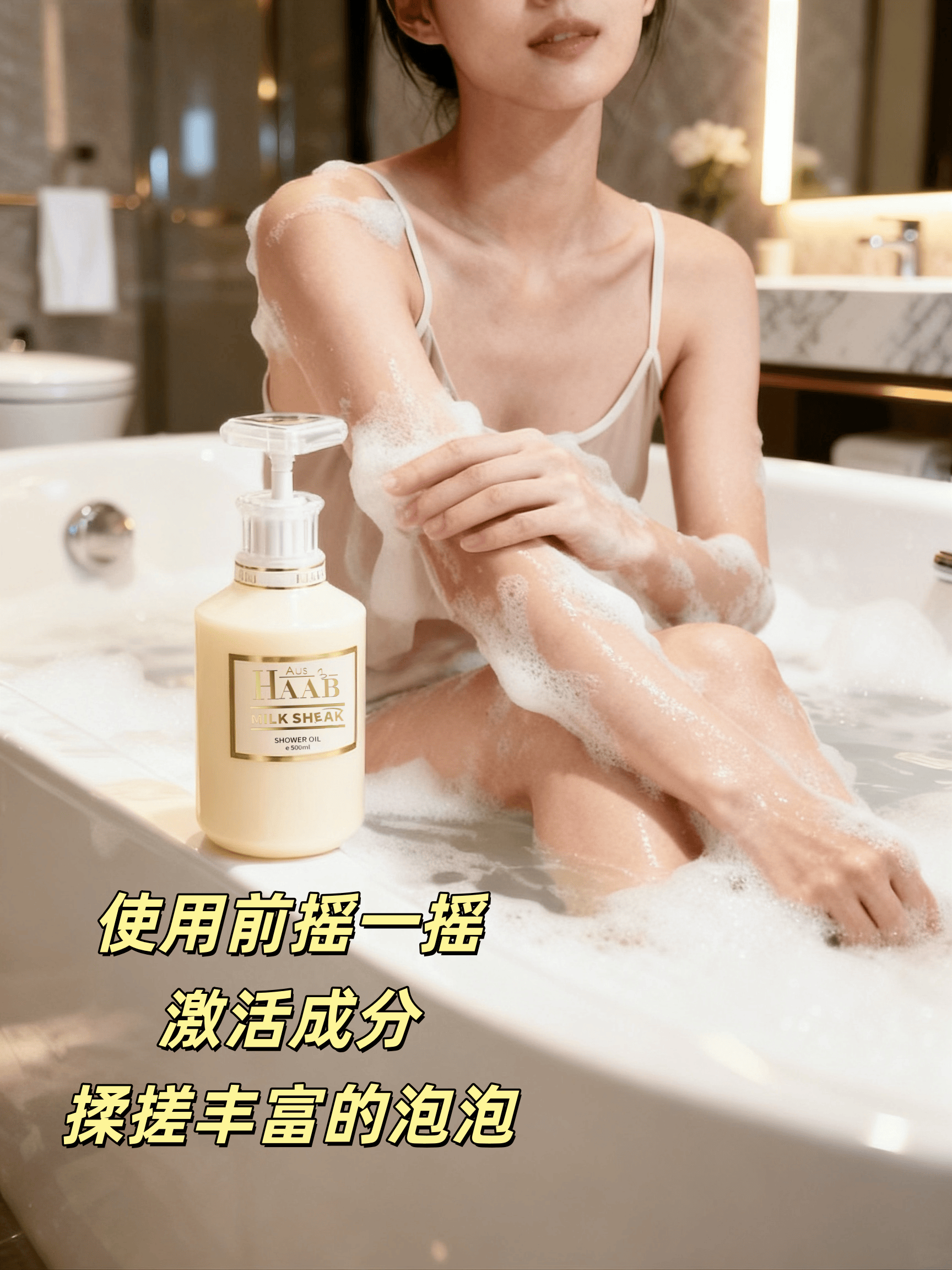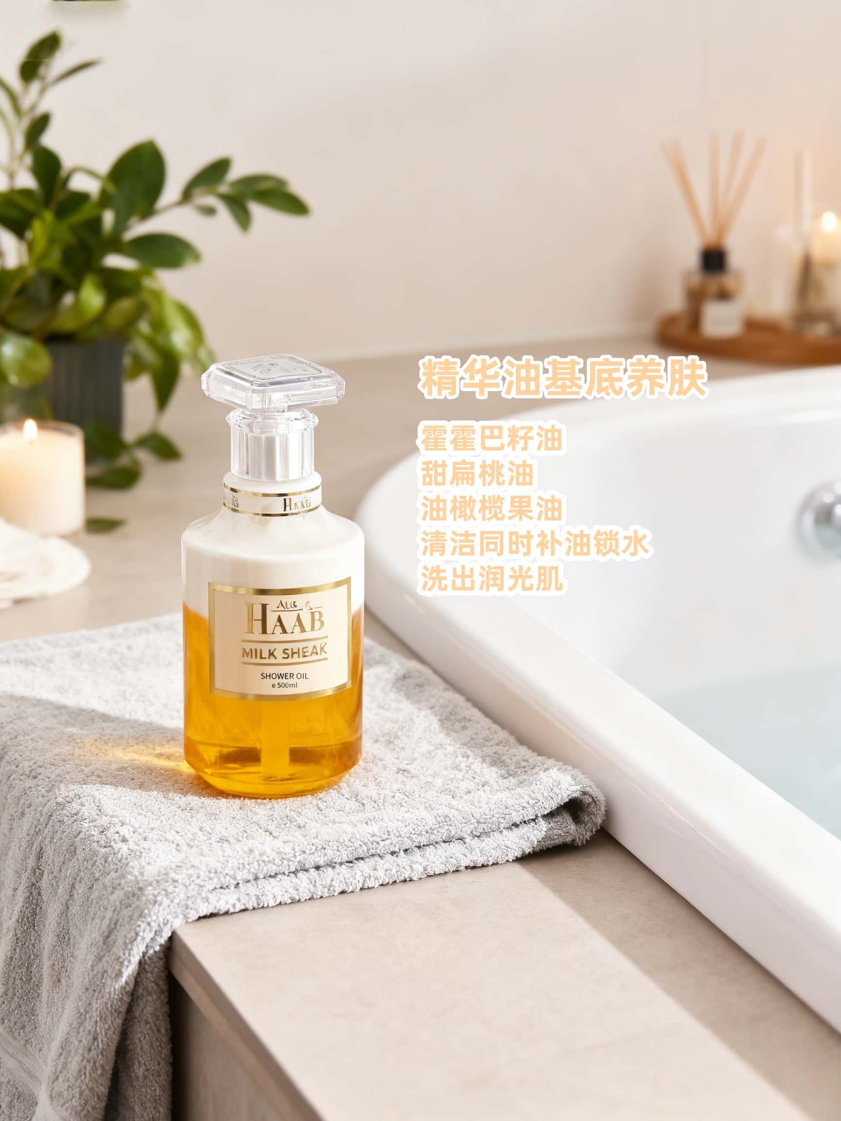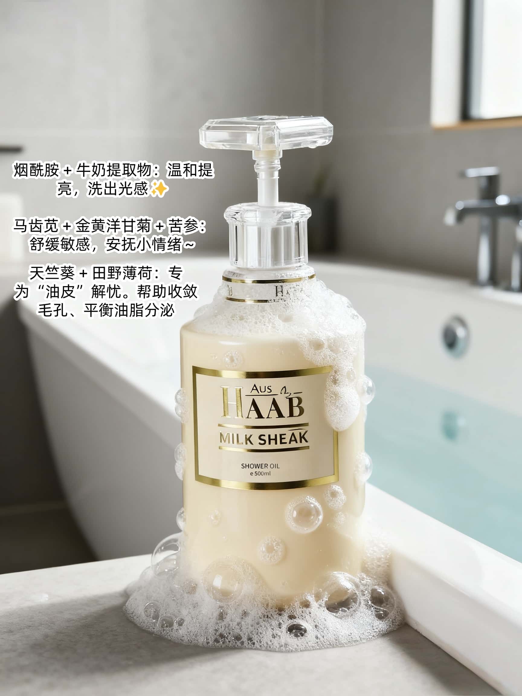 洗养合一🌟【HAAB 奶昔沐浴油】当牛奶精华遇见黄金油露💦开启一场肌肤的奢宠SPA🛀秋冬沐浴不再紧绷,洗出12小时水光肌