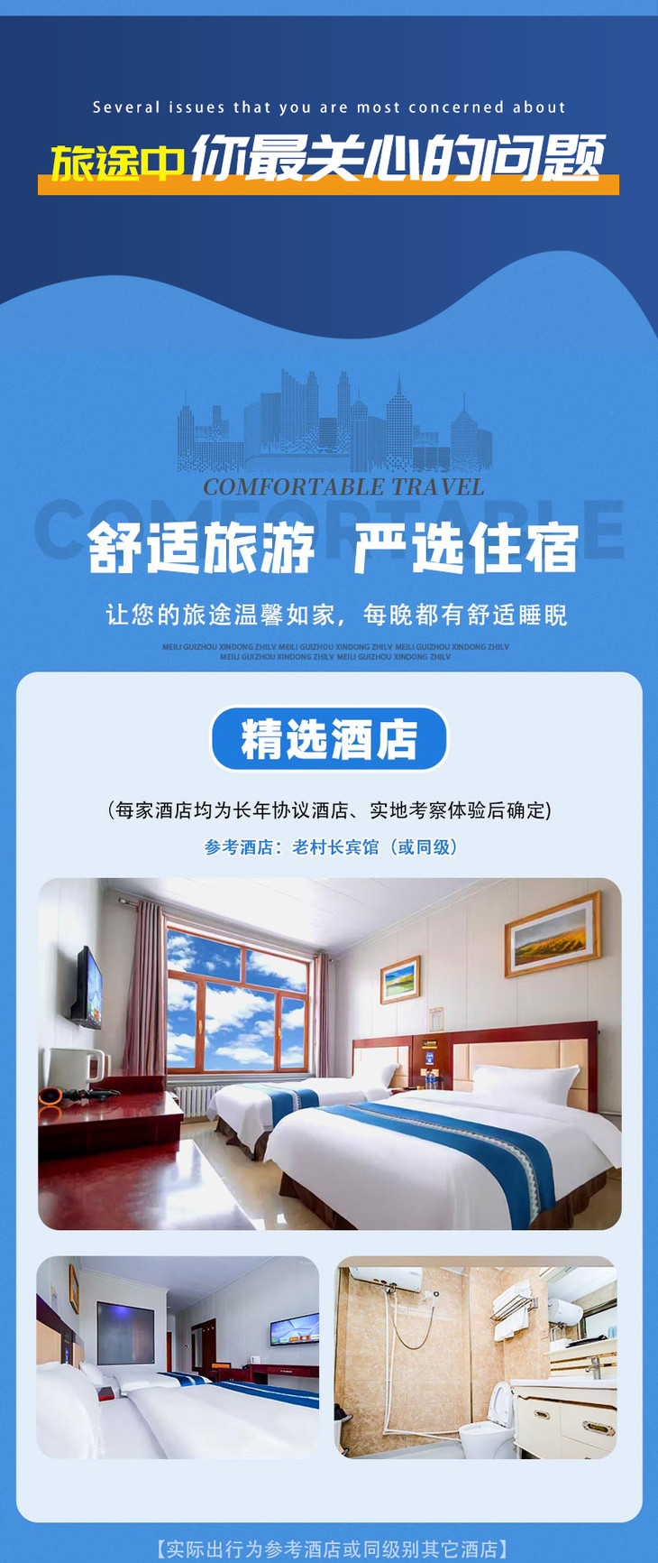 2)住宿:1晚围场酒店、1晚乌兰布统酒店(标间独卫有取暖,单人报名安排同性拼房,如要求单住补单房差240元);