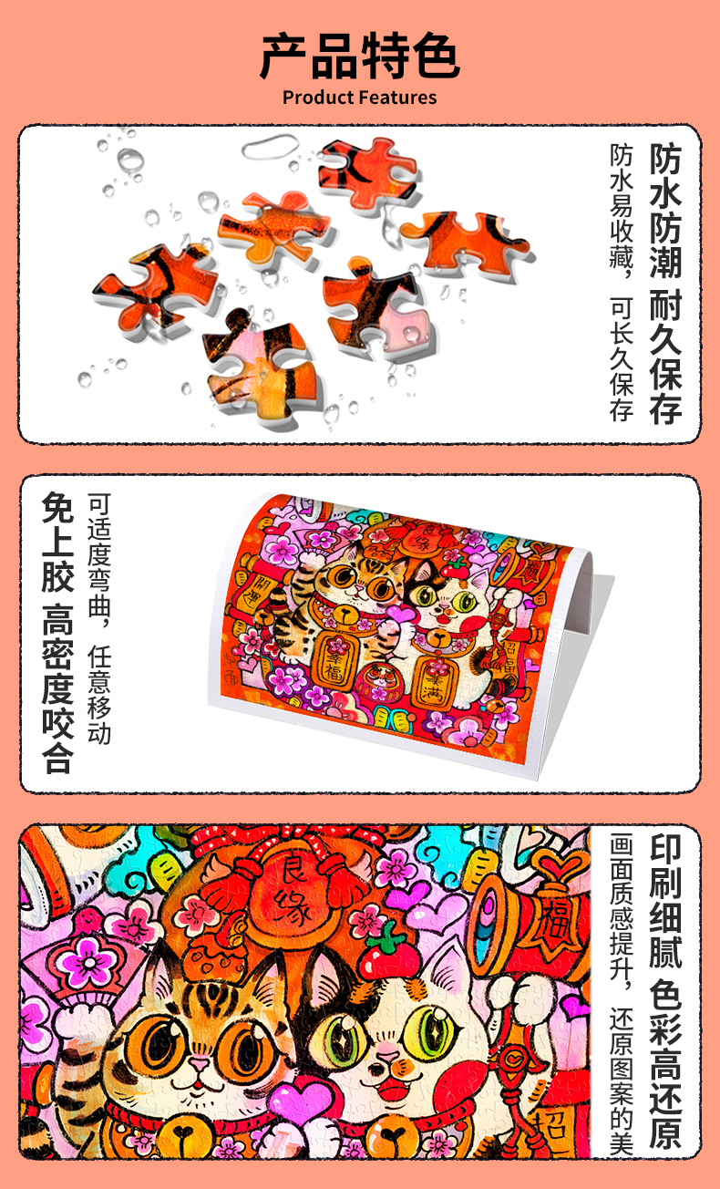 504片 平面塑料拼图 U1125 Giaciu-穆夏风猫咪·月季金渐层【Showpiece L】