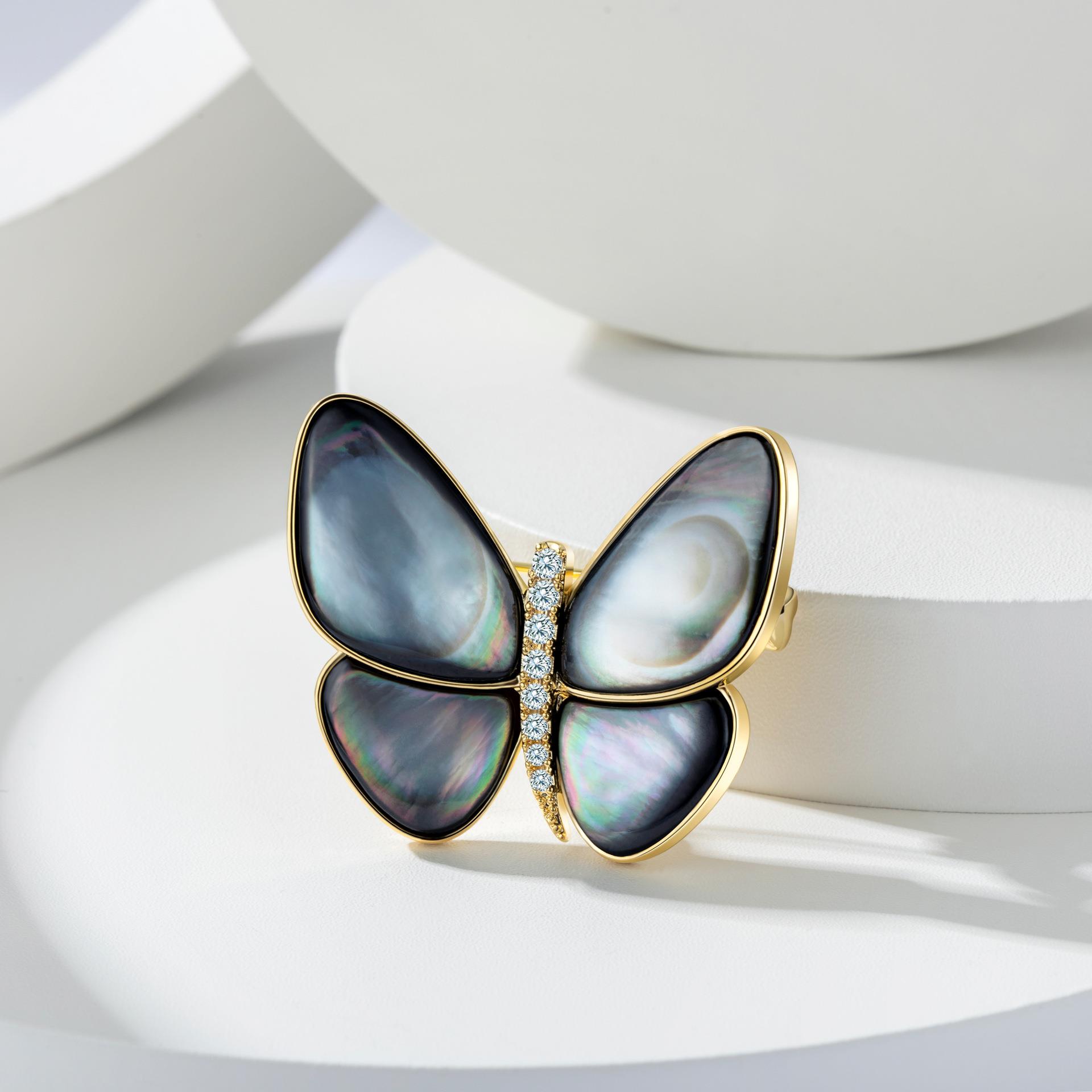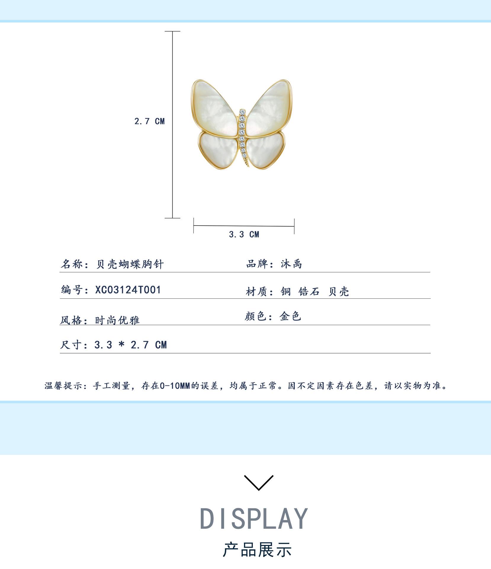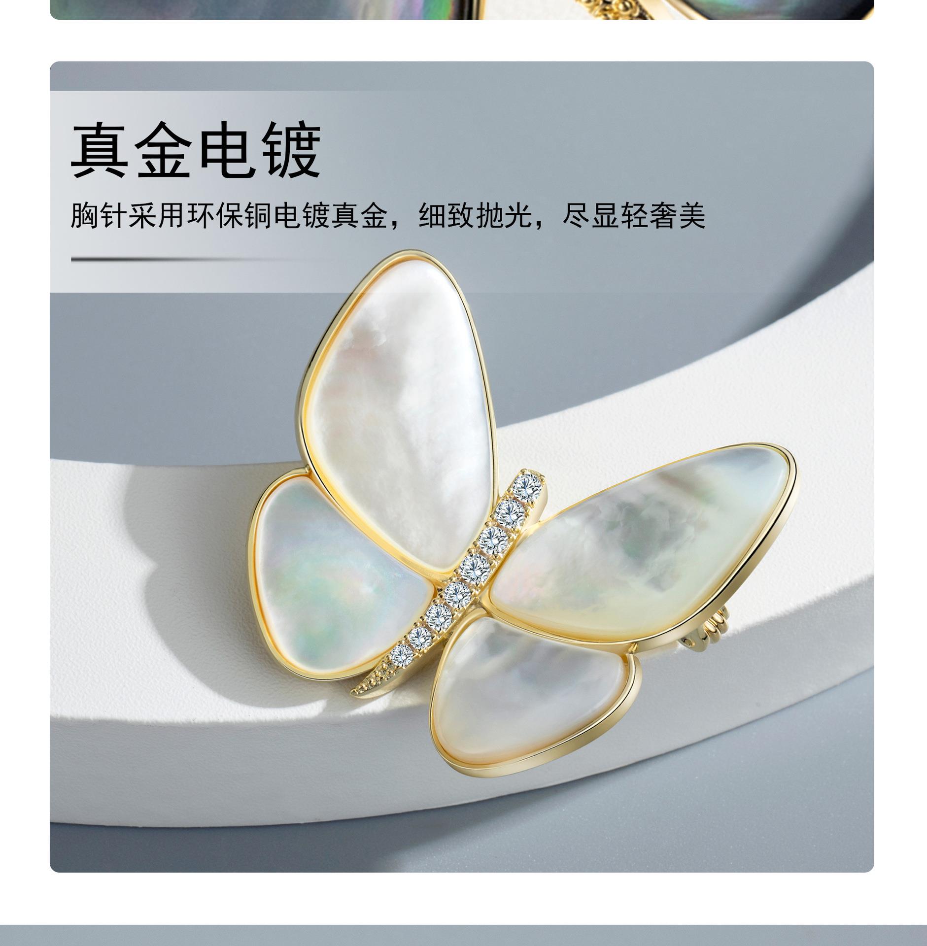 【精装礼盒】孟晚舟同款气质蝴蝶胸针 精致西装胸花配饰天然贝母别针扣