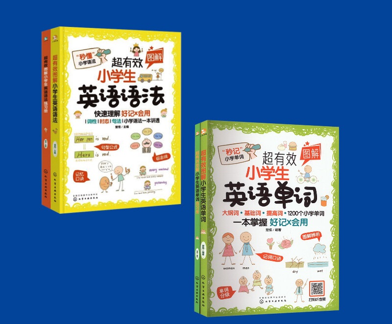 (4册)超有效图解小学生英语系列四本(语法+语法练习册、单词+单词练习册)