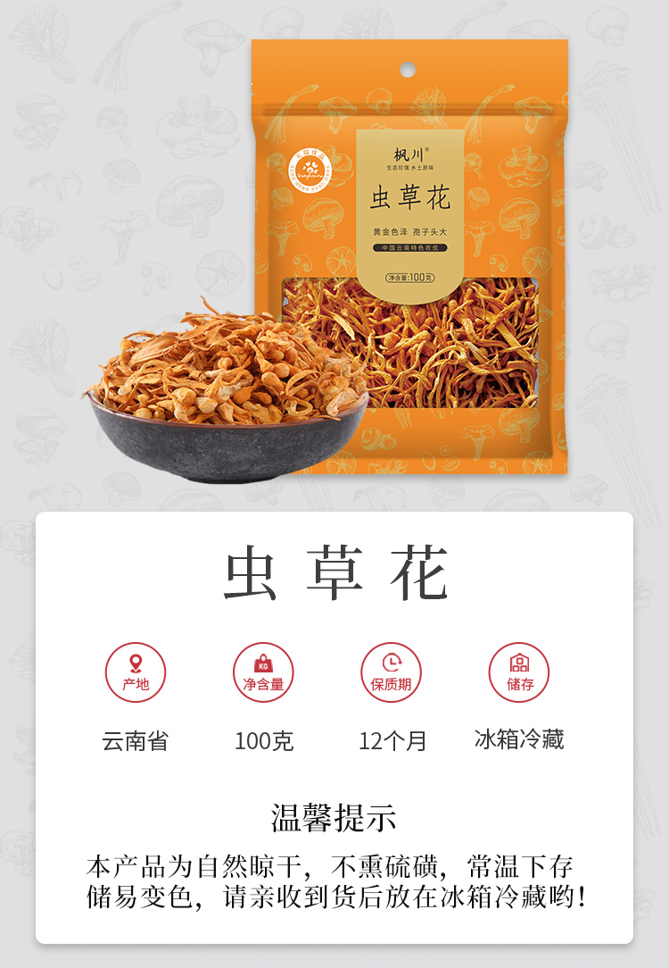 枫川 无硫虫草花 100克*1袋