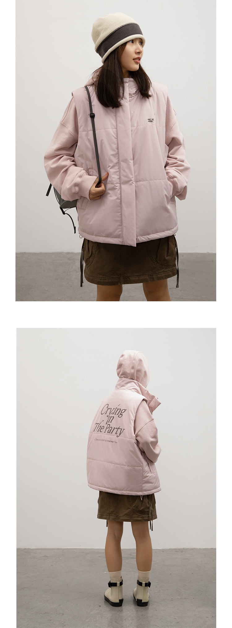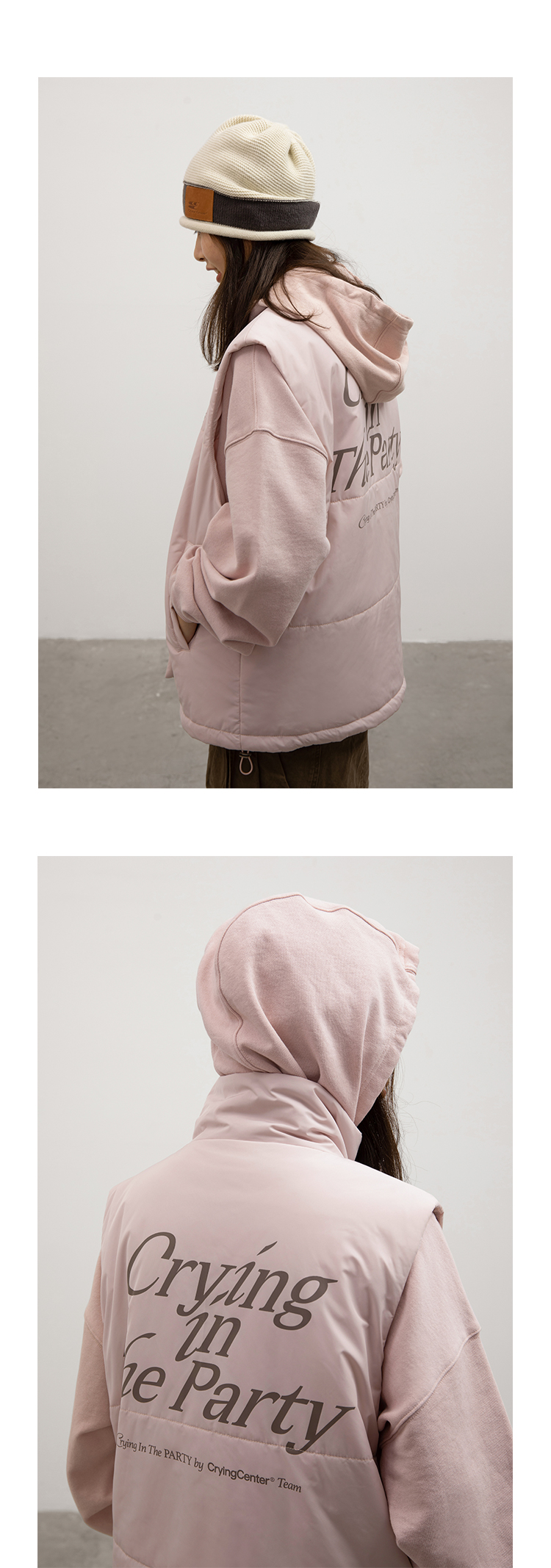 CryingCenter 哭喊泪粉色简约基础棉服马甲外套背心 哭喊中心