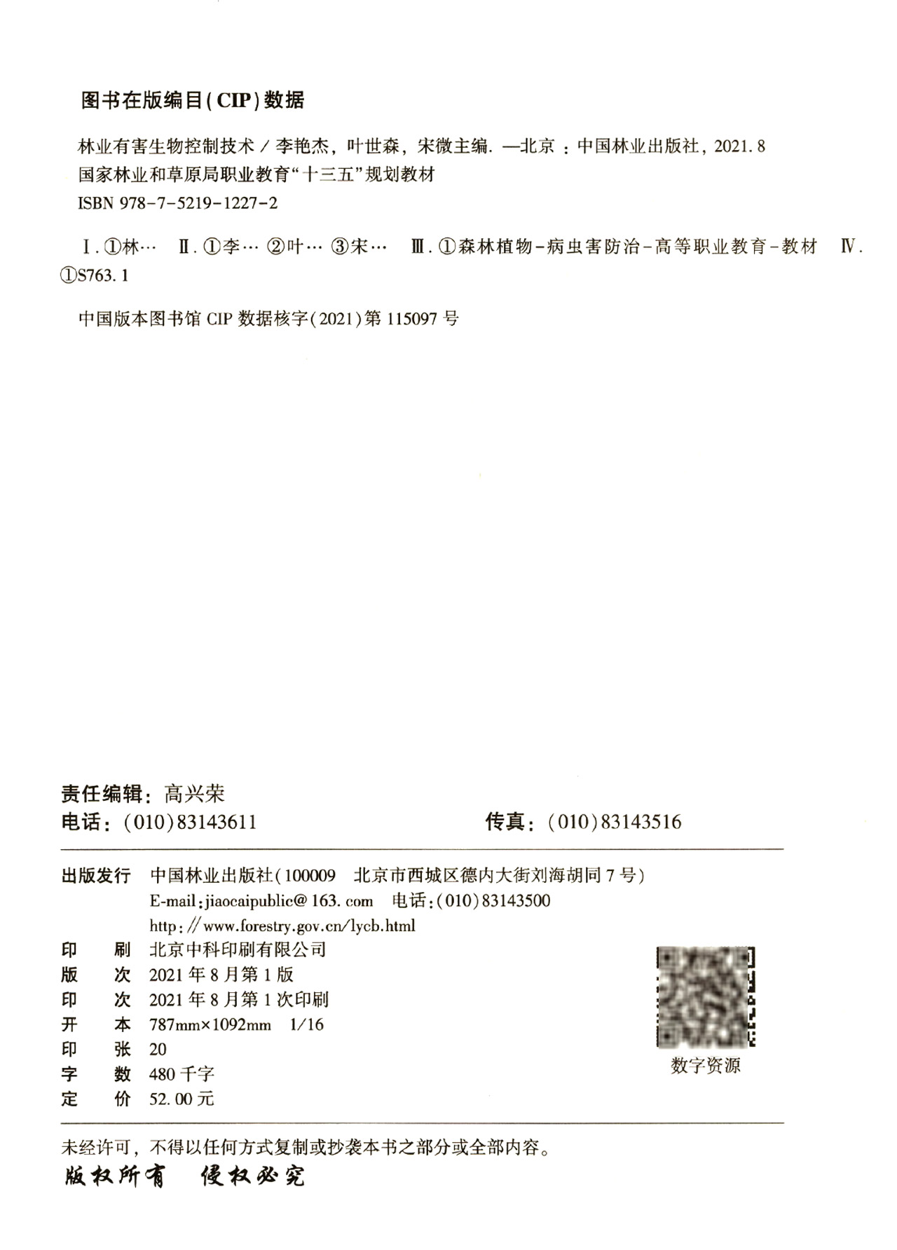 林业有害生物控制技术 李艳杰//叶世森//宋微 (国家林业和草原局职业教育十三五规划教材) 1227 中国林业出版社