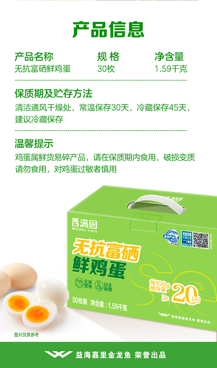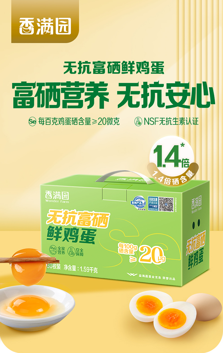香满园无抗富硒鲜鸡蛋(珍珠棉托/礼盒)30枚装