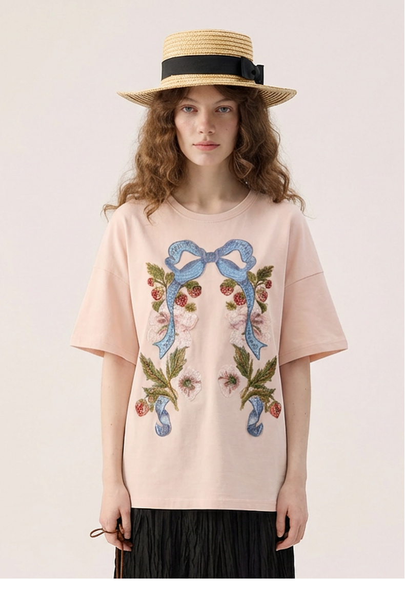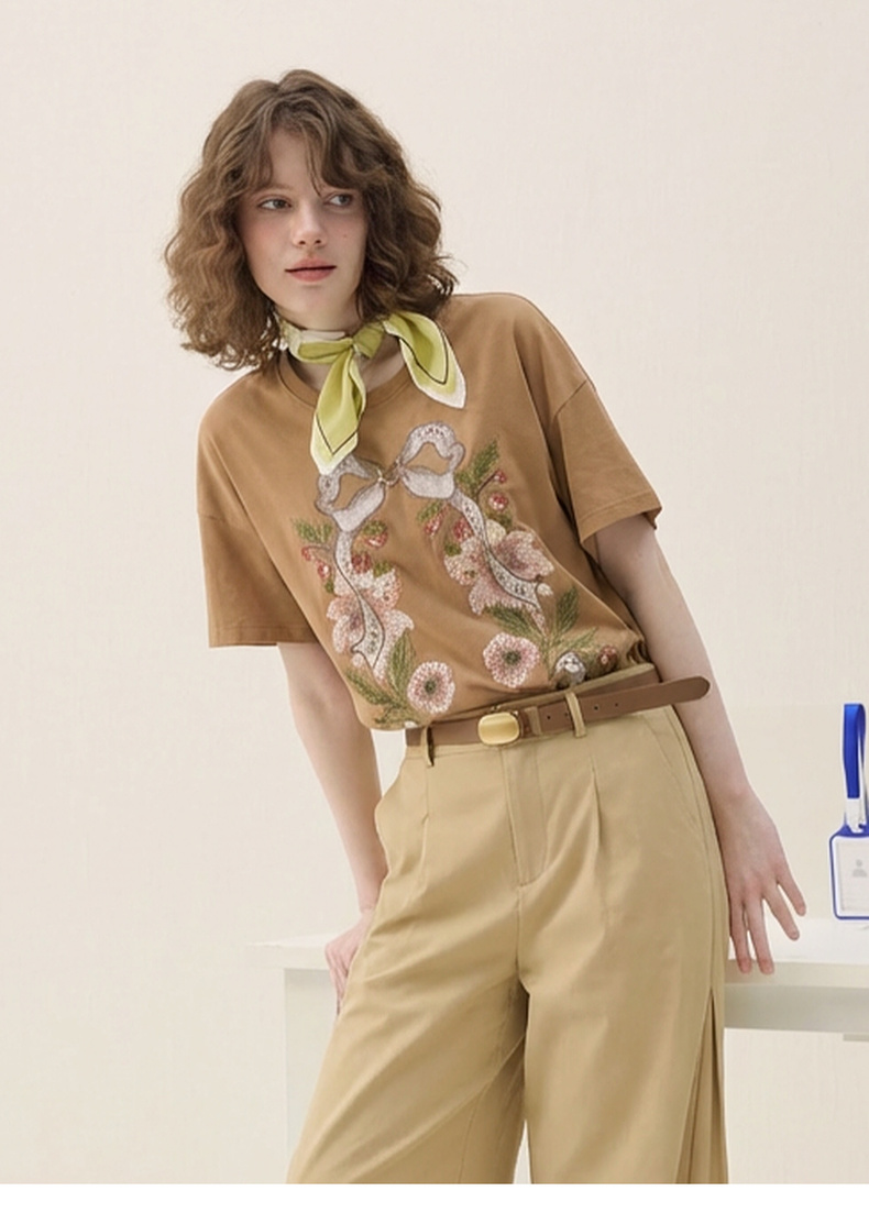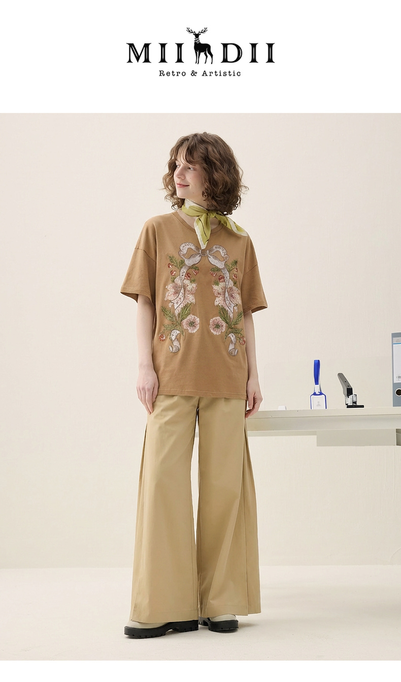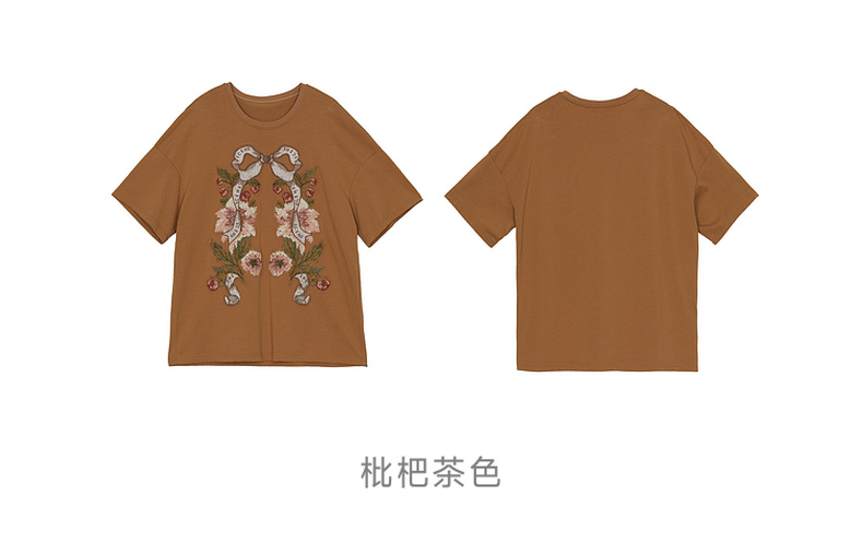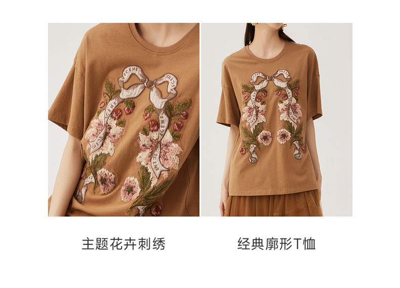 谜底大廓形T恤短袖2026春新品复古贴布绣纯棉宽松上衣女265MT5026
