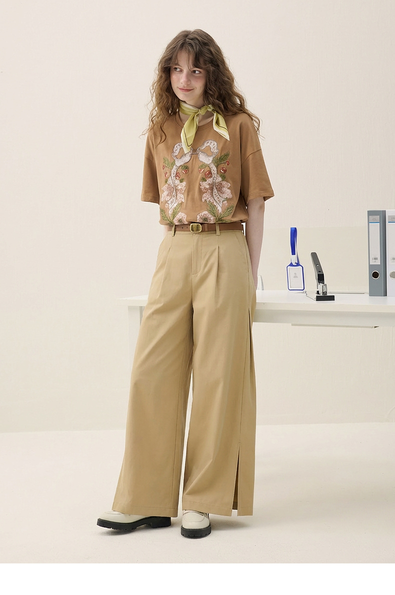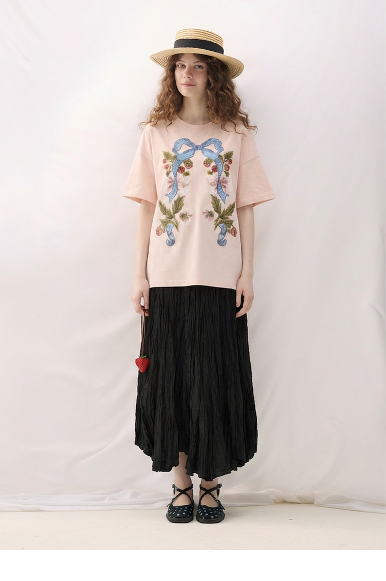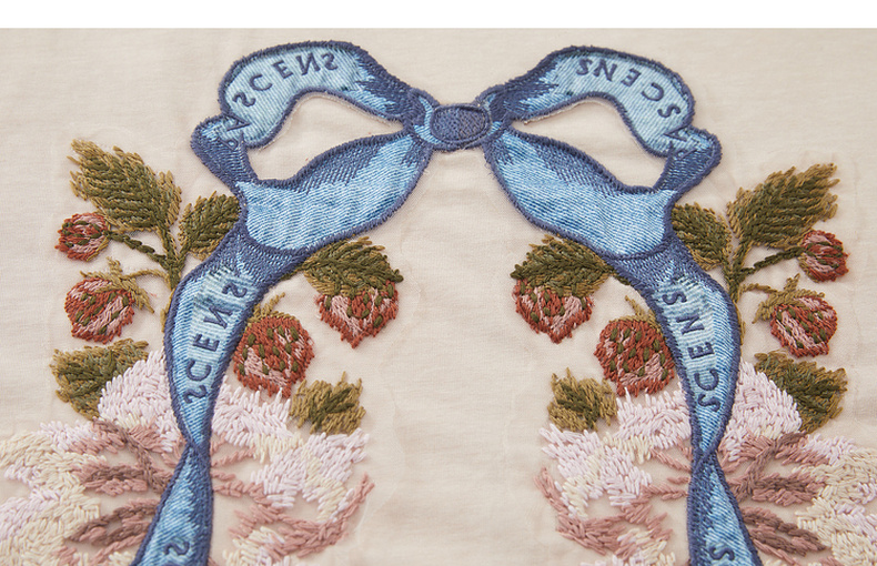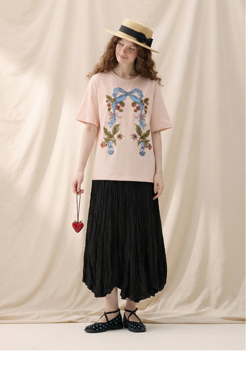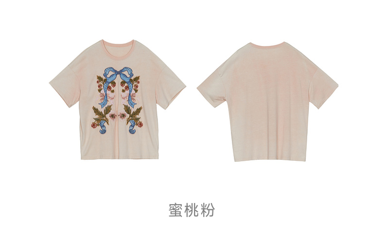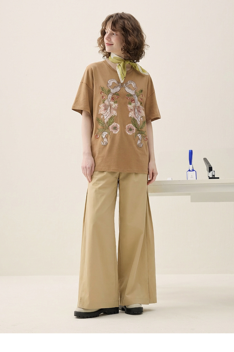 谜底大廓形T恤短袖2026春新品复古贴布绣纯棉宽松上衣女265MT5026