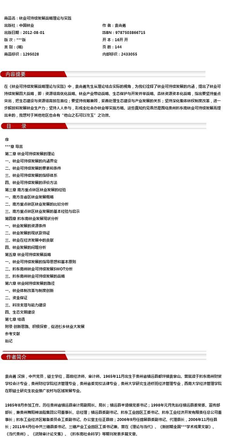 林业可持续发展战略理论与实践6671中国林业出版社官方旗舰店正版畅销书