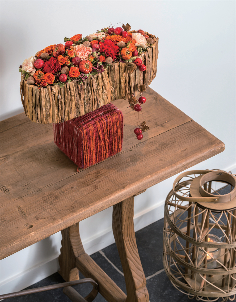 秋季是收获的季节,可选的创作素材丰富多样。不美丽的鲜花,还有坚果、浆果、刺果及色彩艳丽的叶子。《创意花艺》的花艺师将这些丰富的材料与鲜花一起,创造出温暖的秋季作品。