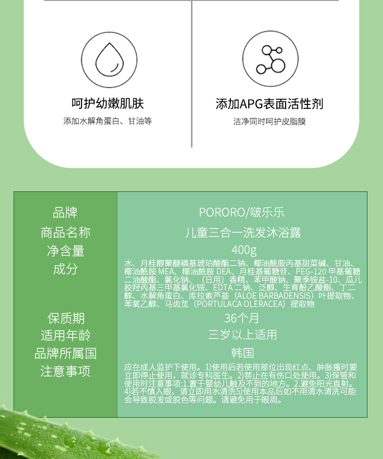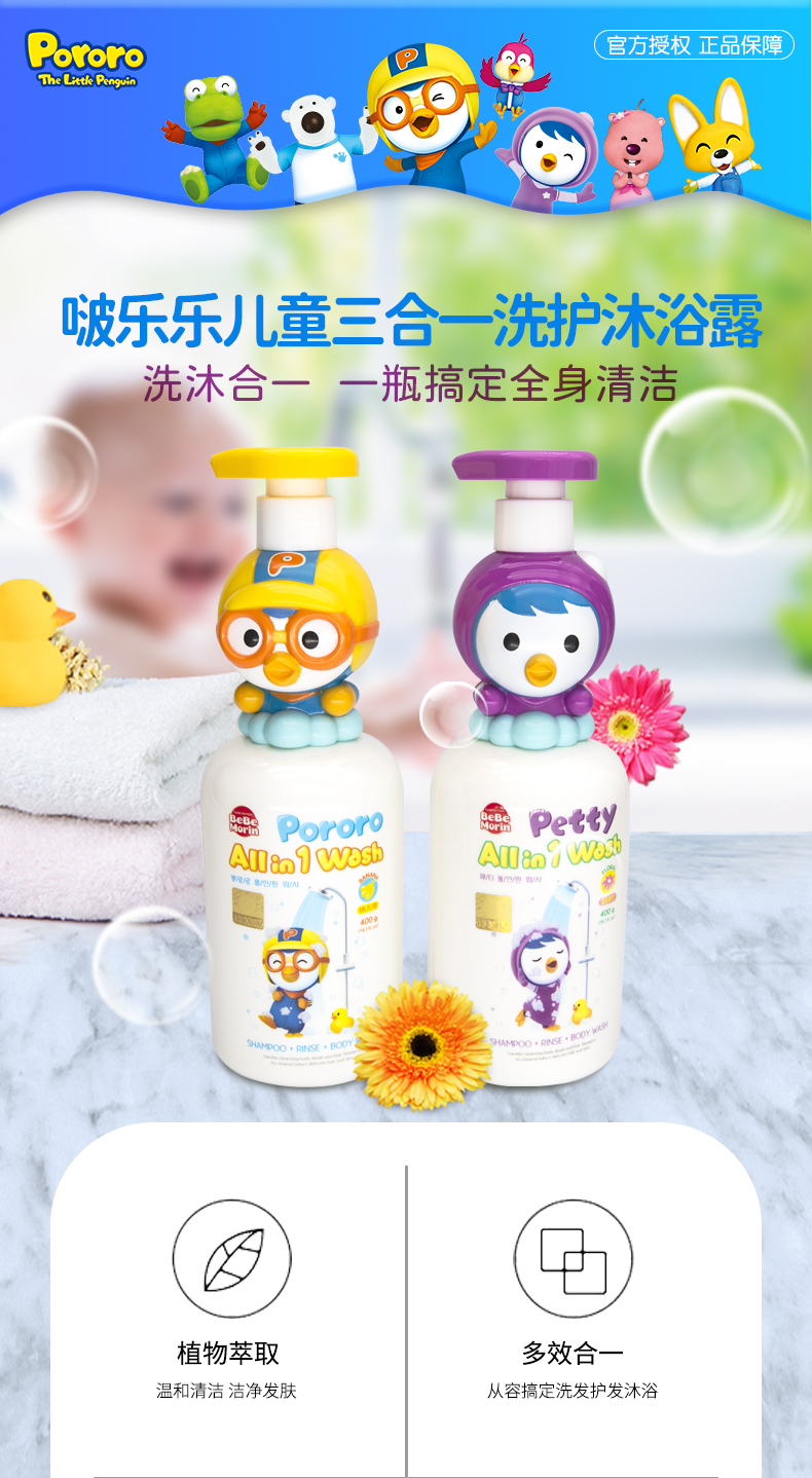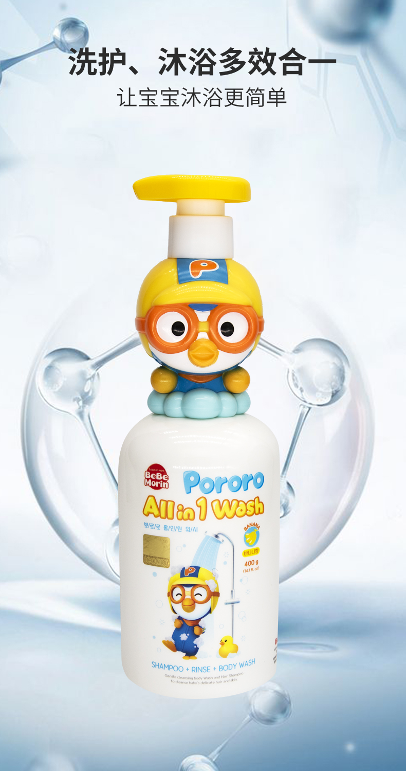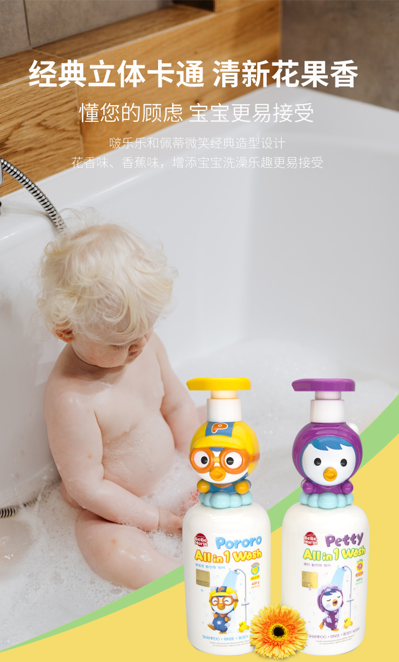 Pororo啵乐乐儿童新款洗护3合一(香蕉味/花香味)400ml