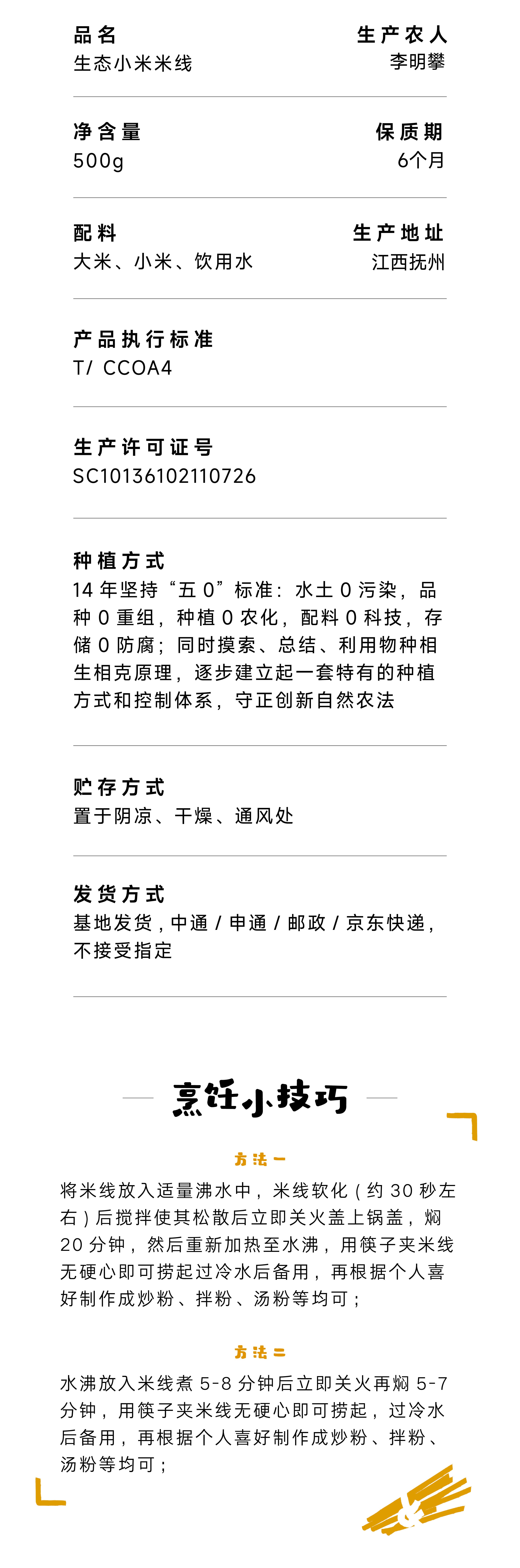 生态小米米线 500g/袋*2 | 合作农友生产,来自江西抚州,生产者是:李明攀 *【公平贸易农人定价】