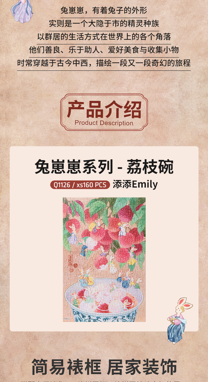 160片 迷你拼图 Q1126 添添Emily-兔崽崽系列-荔枝碗